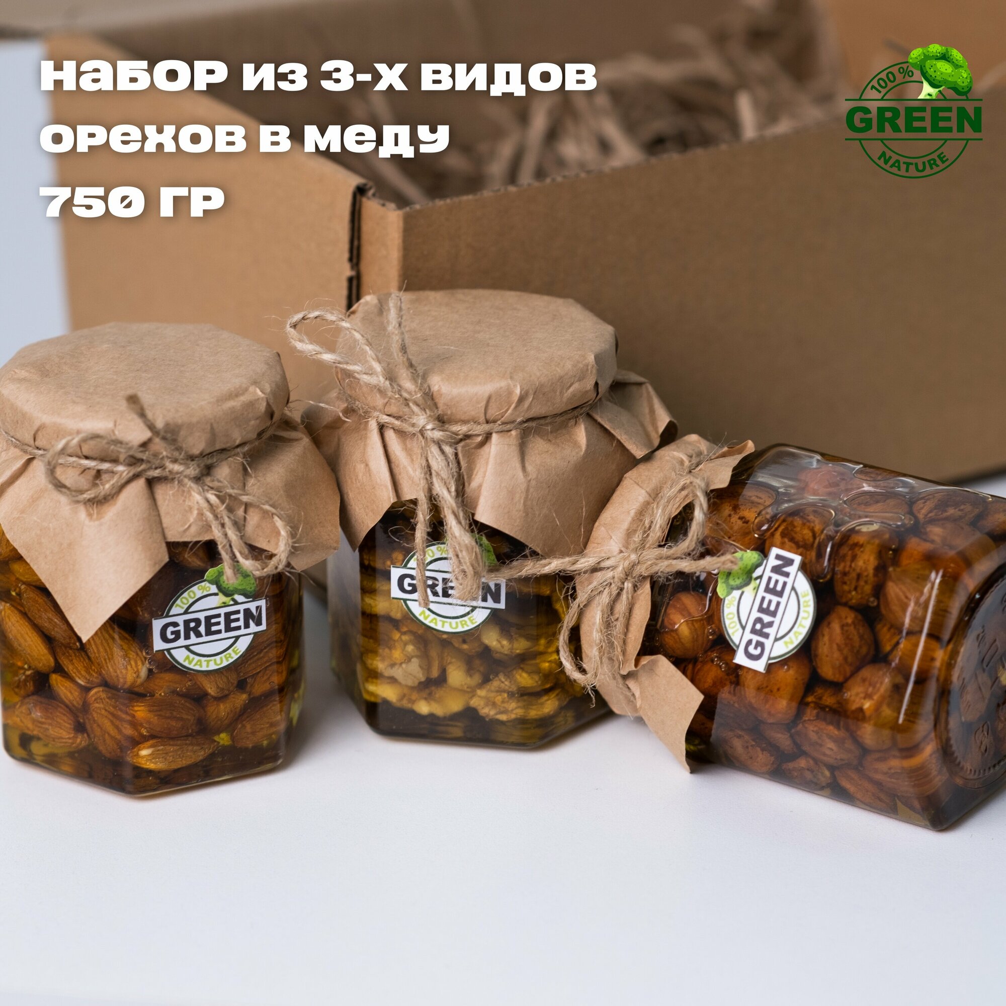 Подарочный набор "Орехи в меду" 750 гр, миндаль, фундук, грецкий орех интересное: