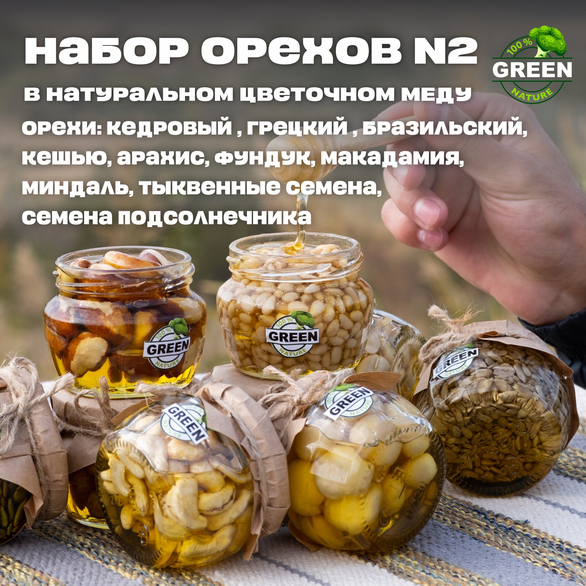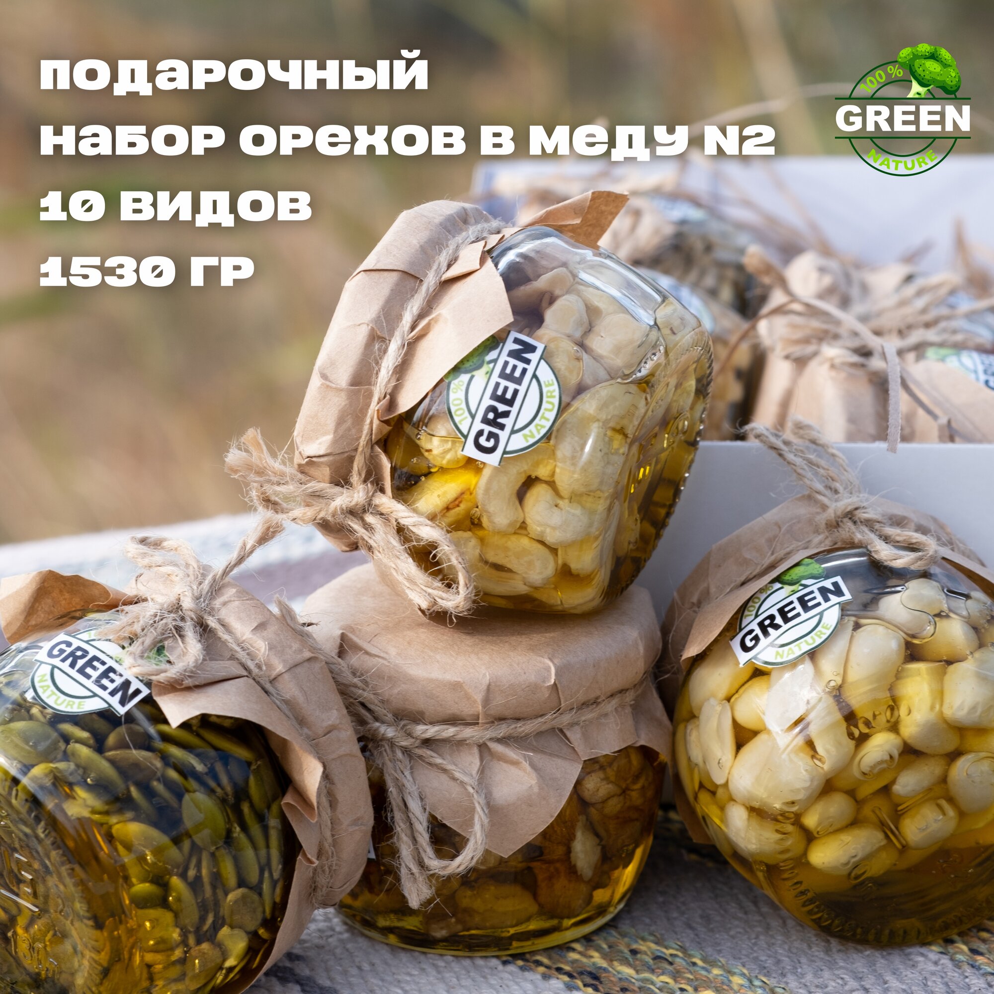 Подарочный набор Green 100% Nature, орехи и семечки в меду, 10 вкусов, 1,5кг интересное: