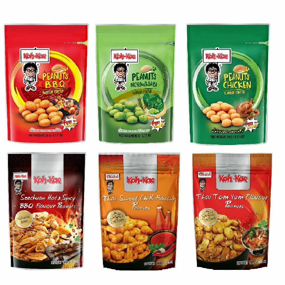 Арахис обжаренный KO-XE 5 шт в 1уп ассорти (васаби, барбекю, курица, Том Ям, сыцуаньский соус) 540гр интересное: