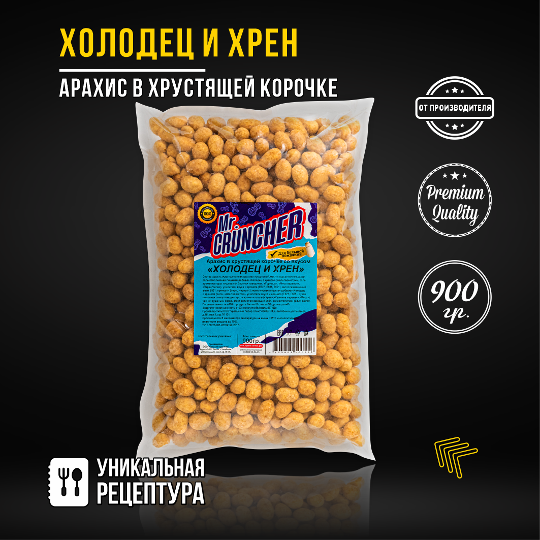 Арахис жареный соленый с хрустящей корочкой Mr. Cruncher в глазури к пиву со вкусом холодец и хрен, 900 гр. интересное:
