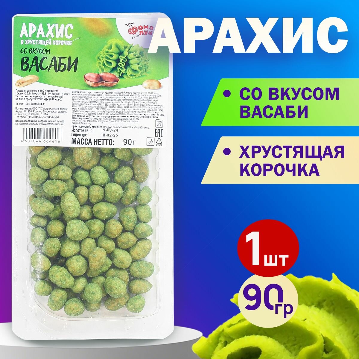 Арахис в хрустящей корочке со вкусом "Васаби". Фома Лукич. 90 гр. интересное: