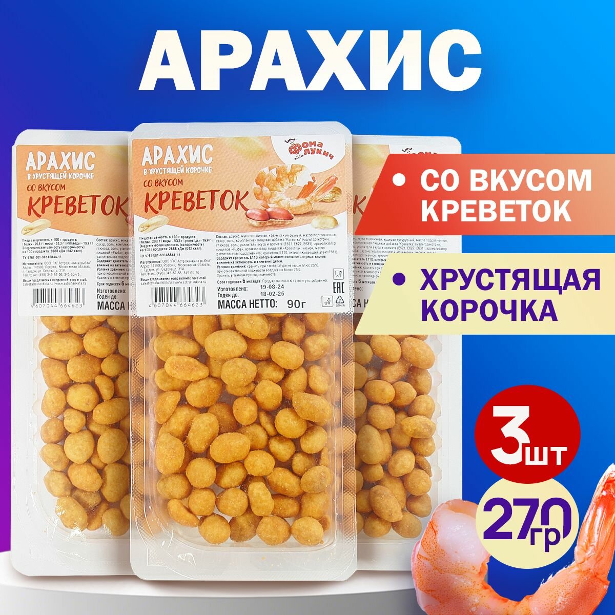 Арахис в хрустящей корочке со вкусом "Креветок". Фома Лукич. 270 гр. интересное: