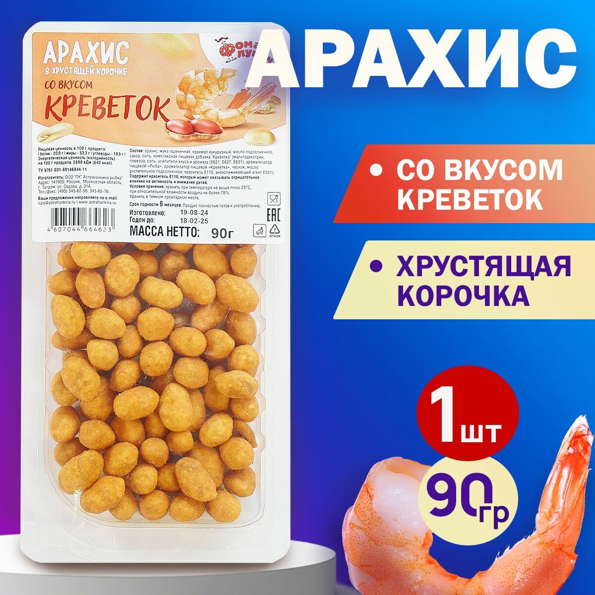 Арахис в хрустящей корочке со вкусом "Креветка". Фома Лукич. 90гр. интересное: