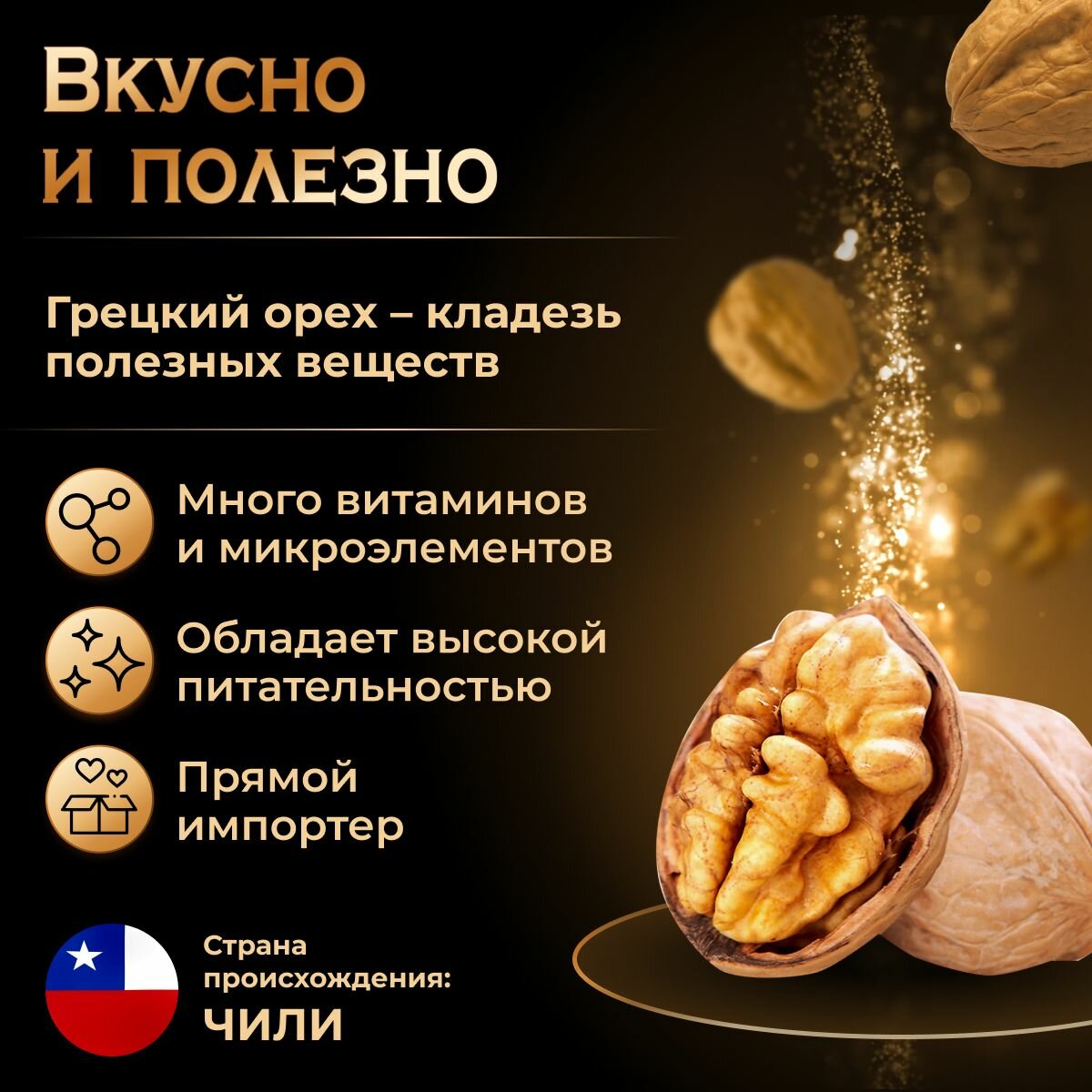 Грецкий орех в тонкой скорлупе KONA, калибр 36+( XL ), Чили, Premium, 1000 гр. интересное: