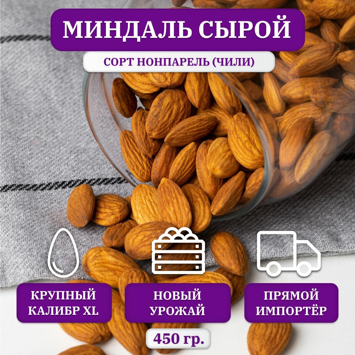 Миндаль сырой очищенный, калибр 20/22 ( XL ), Чили, 450 гр. интересное: