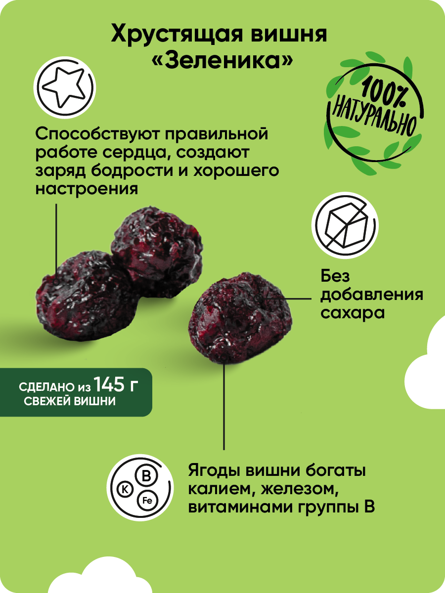 Вишня фруктовые чипсы Зеленика / полезный перекус, без сахара / 3х25г интересное: