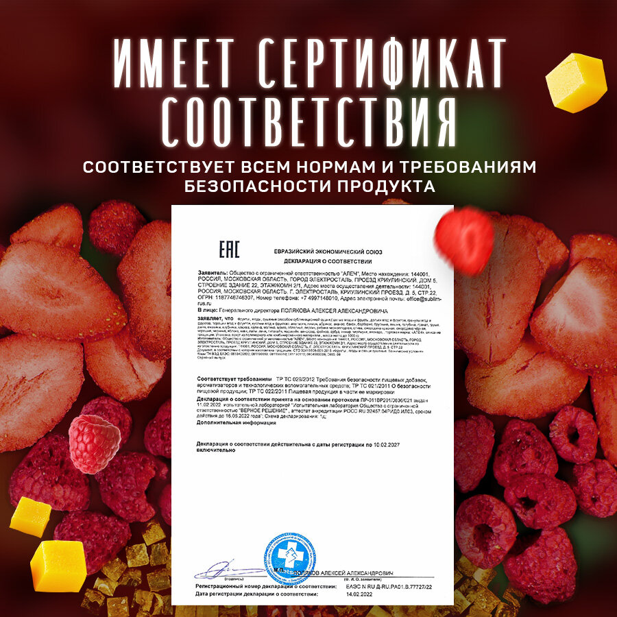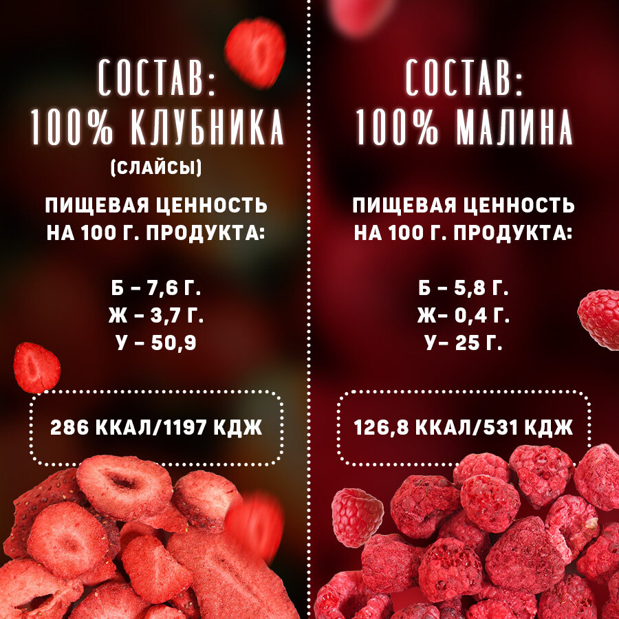 Fojo Микс из клубники, малины и манго / Ягоды натуральные без сахара 4 шт по 15 г интересное:
