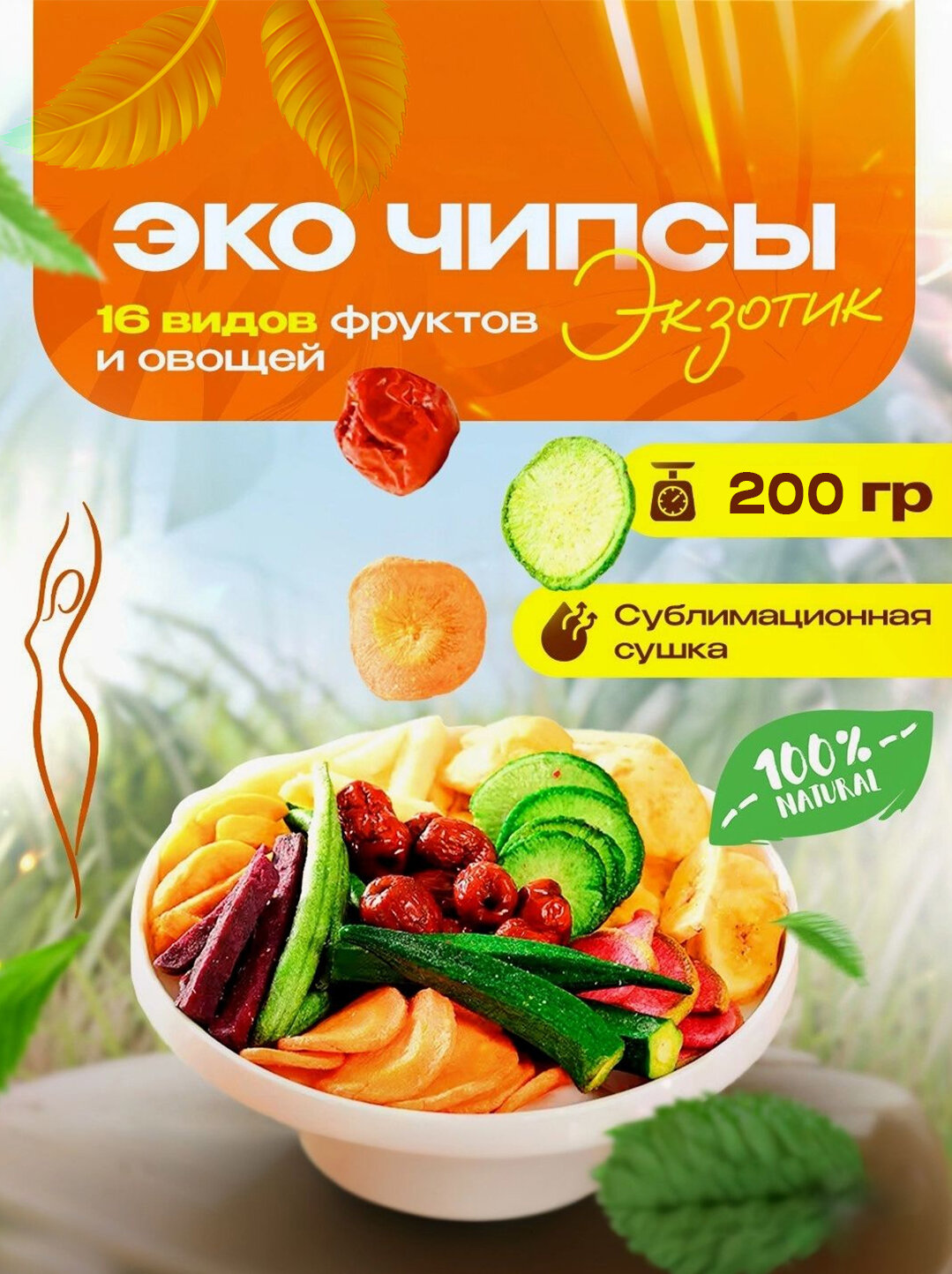Сухофрукты ЧИПСЫ фруктовые и овощные чипсы 16 вкусов ECO CHIPS 200 г Сухофрукты и сушеные овощи; Цукаты; Сублимированные интересное: