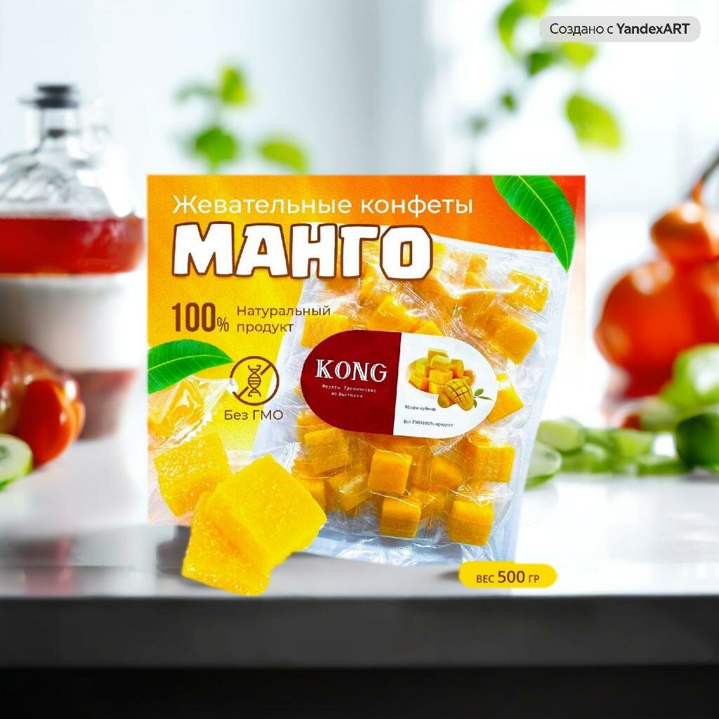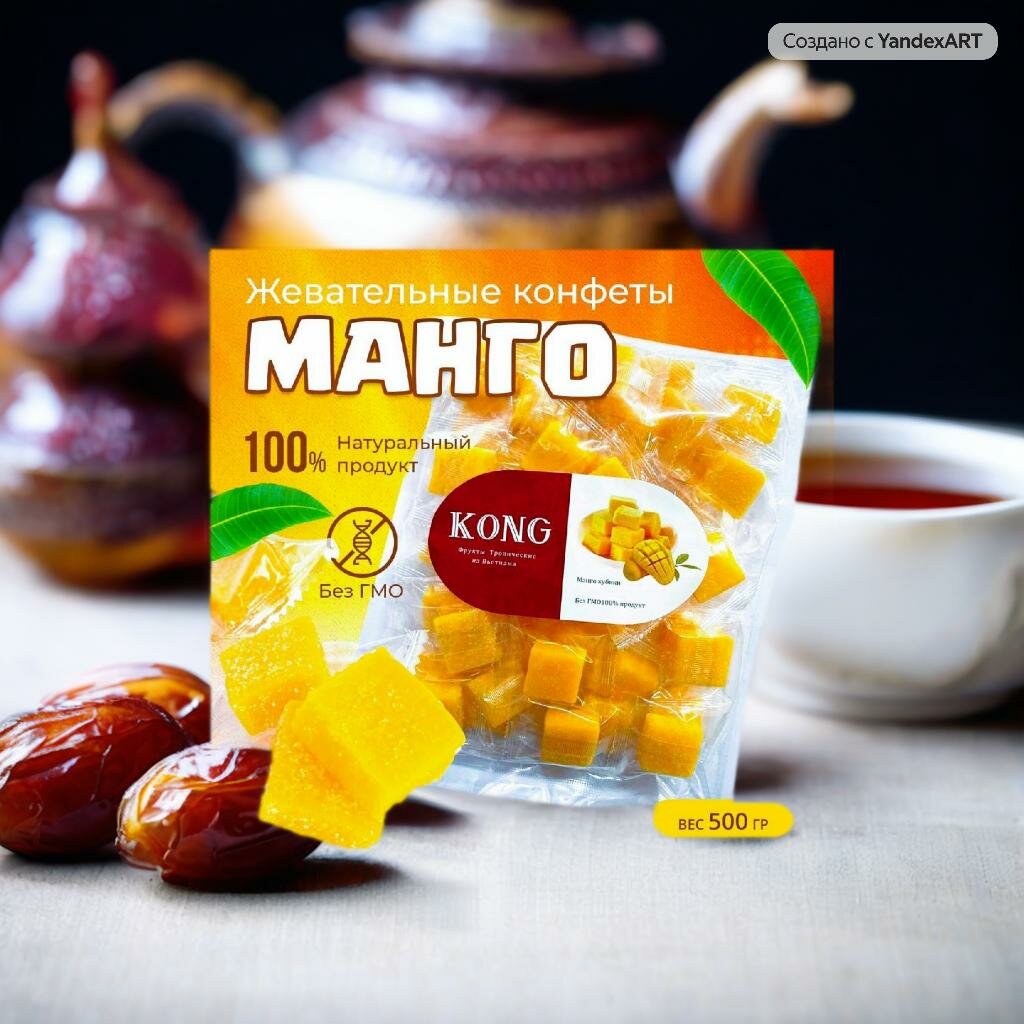 Манго кубики Kong в пакете 500 гр.\Манговое желе в виде жевательных конфет интересное: