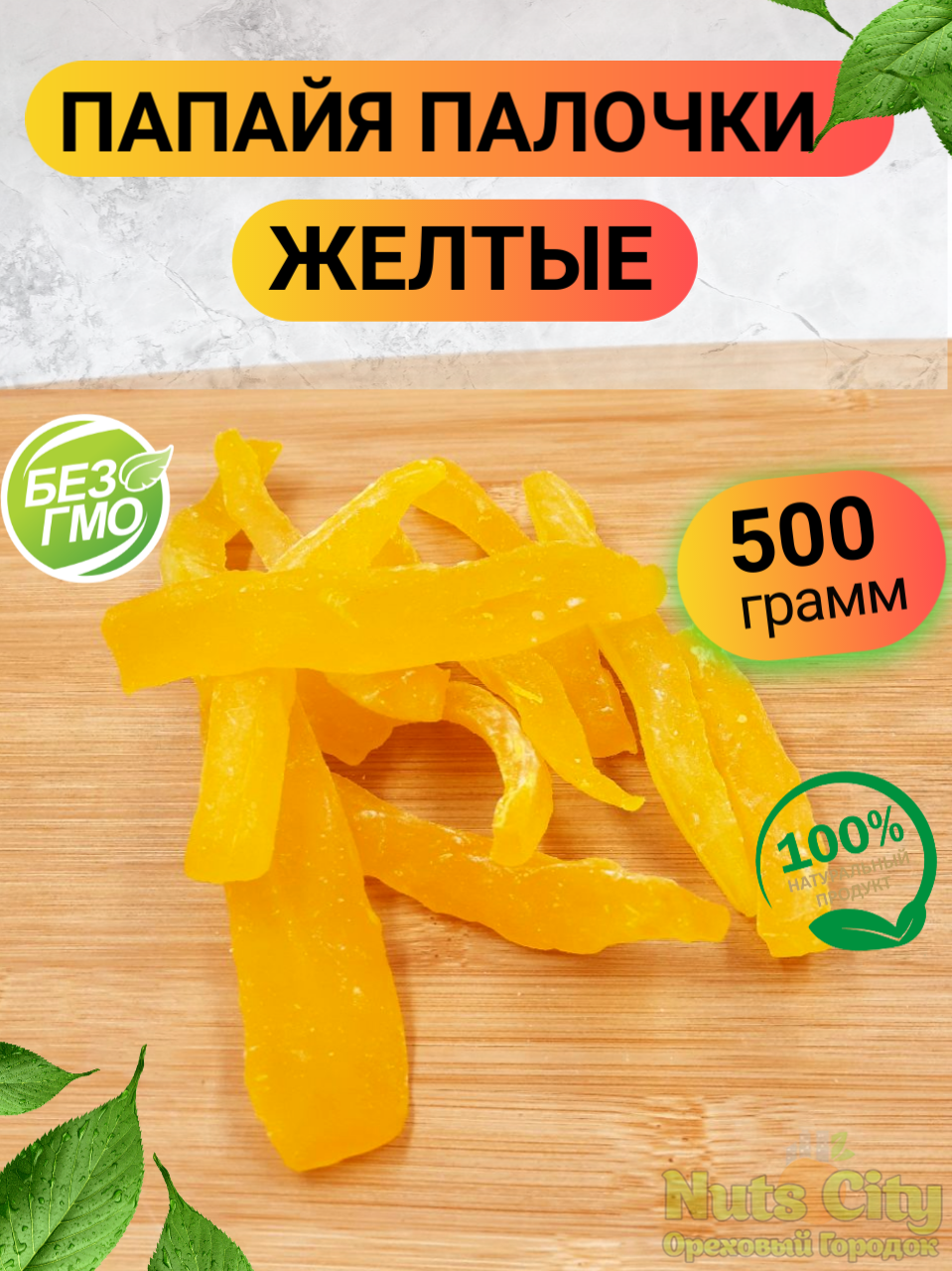 Папайя желтая палочки 500гр/Цукаты папайя сушеная палочки 0.5кг /Ореховый Городок интересное: