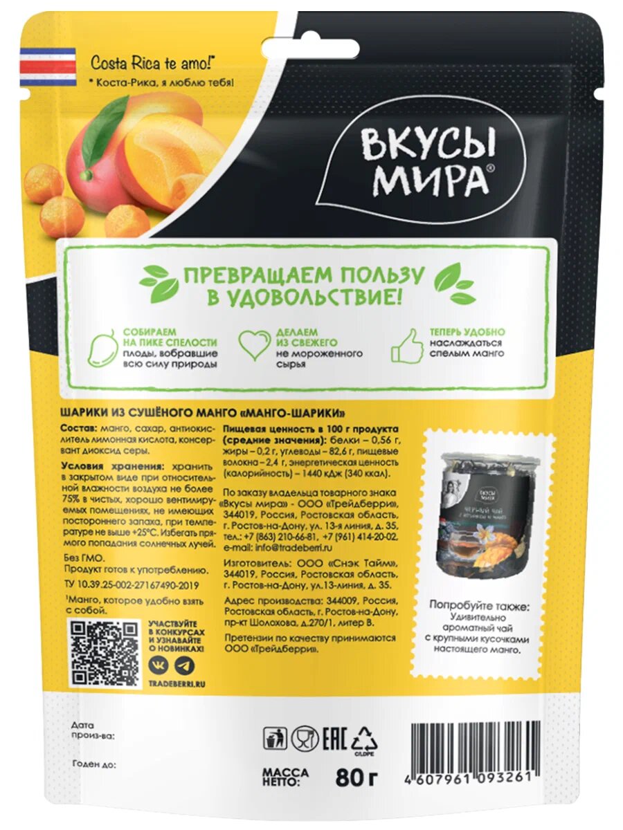 Манго-шарики сушеные 80 г конфеты из сухофруктов натуральные 3 шт интересное: