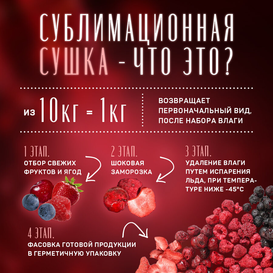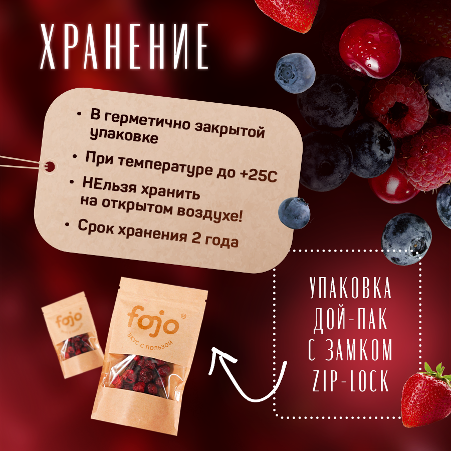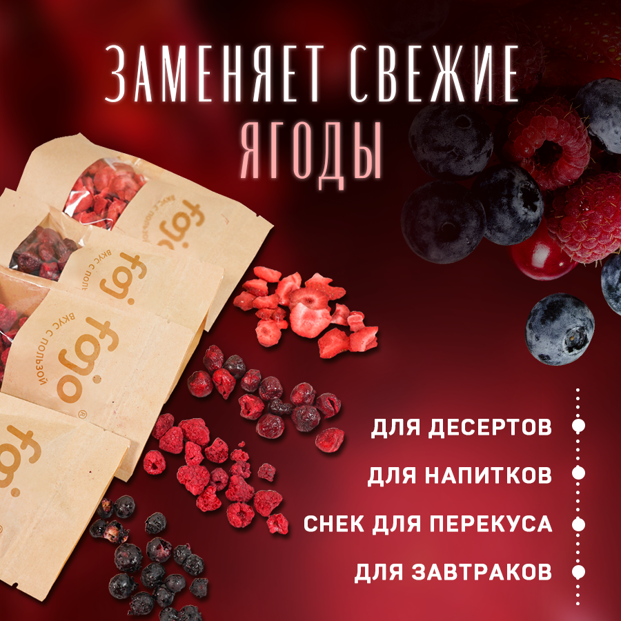 Fojo Микс из клубники, малины, черники и вишни / Ягоды натуральные без сахара 4 шт по 15 г интересное: