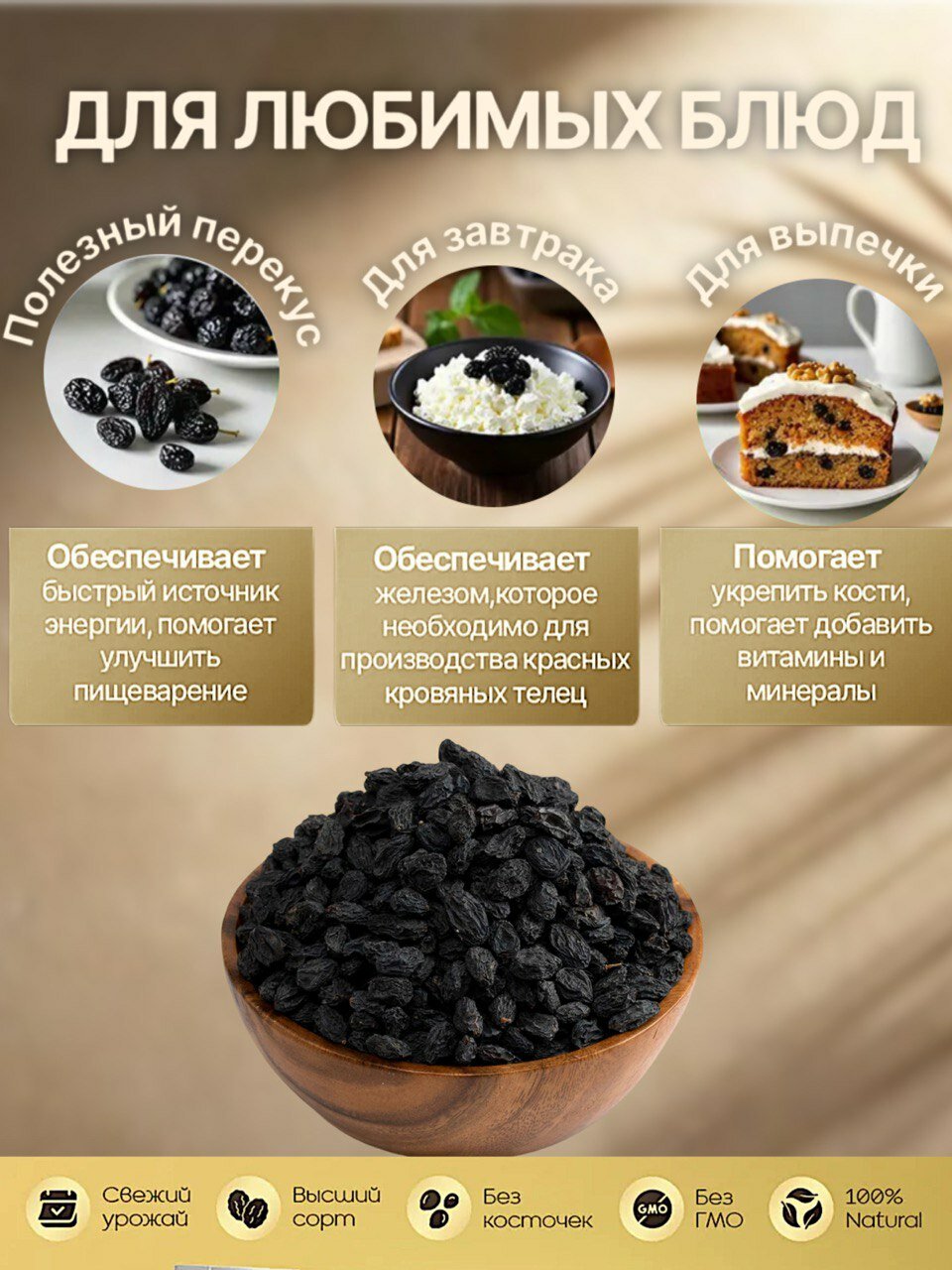Изюм Royal Nuts "Кагор", темный, без косточек, крупный, новый урожай, без сахара, 500 гр интересное: