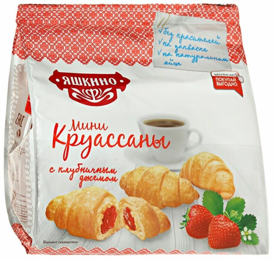 Круассаны Яшкино мини, с клубничным джемом, 180 гр - 1 упаковка интересное: