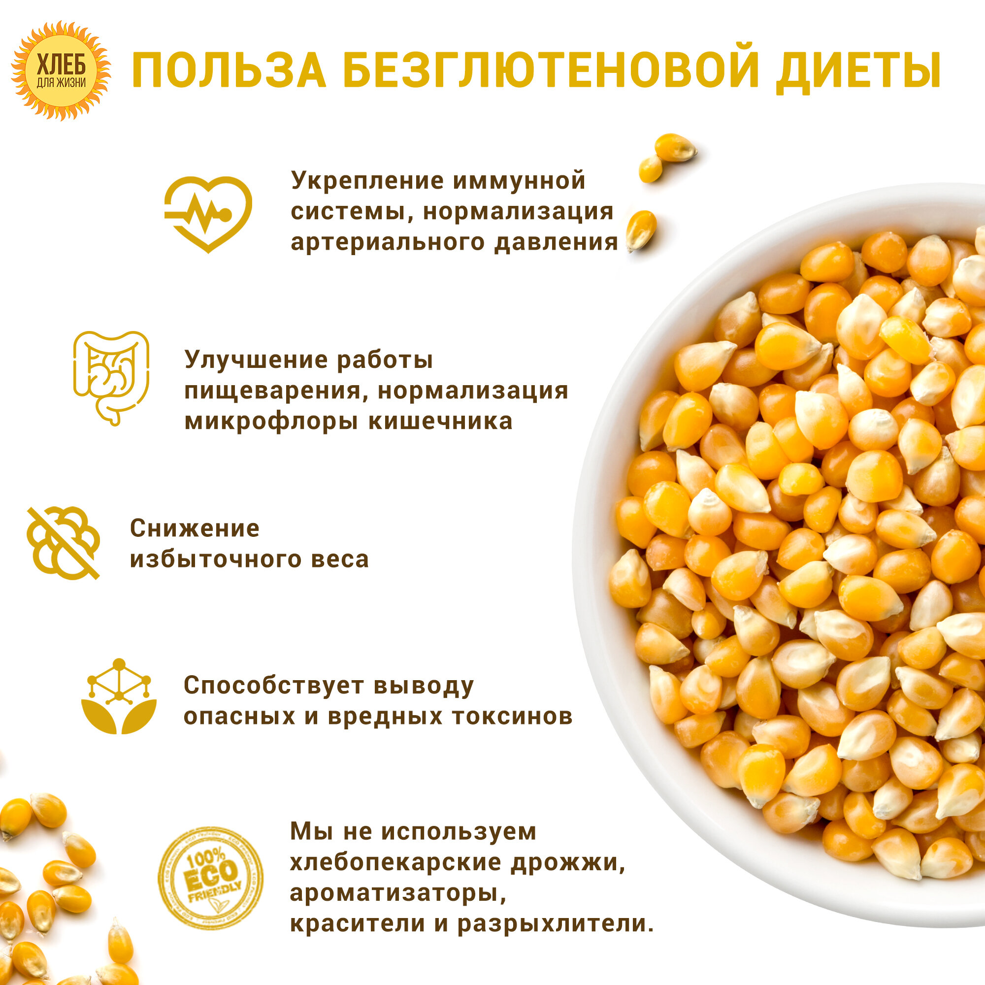 (1х400г) Хлеб Кукурузный безглютеновый, цельнозерновой, бездрожжевой на закваске - Хлеб для Жизни интересное: