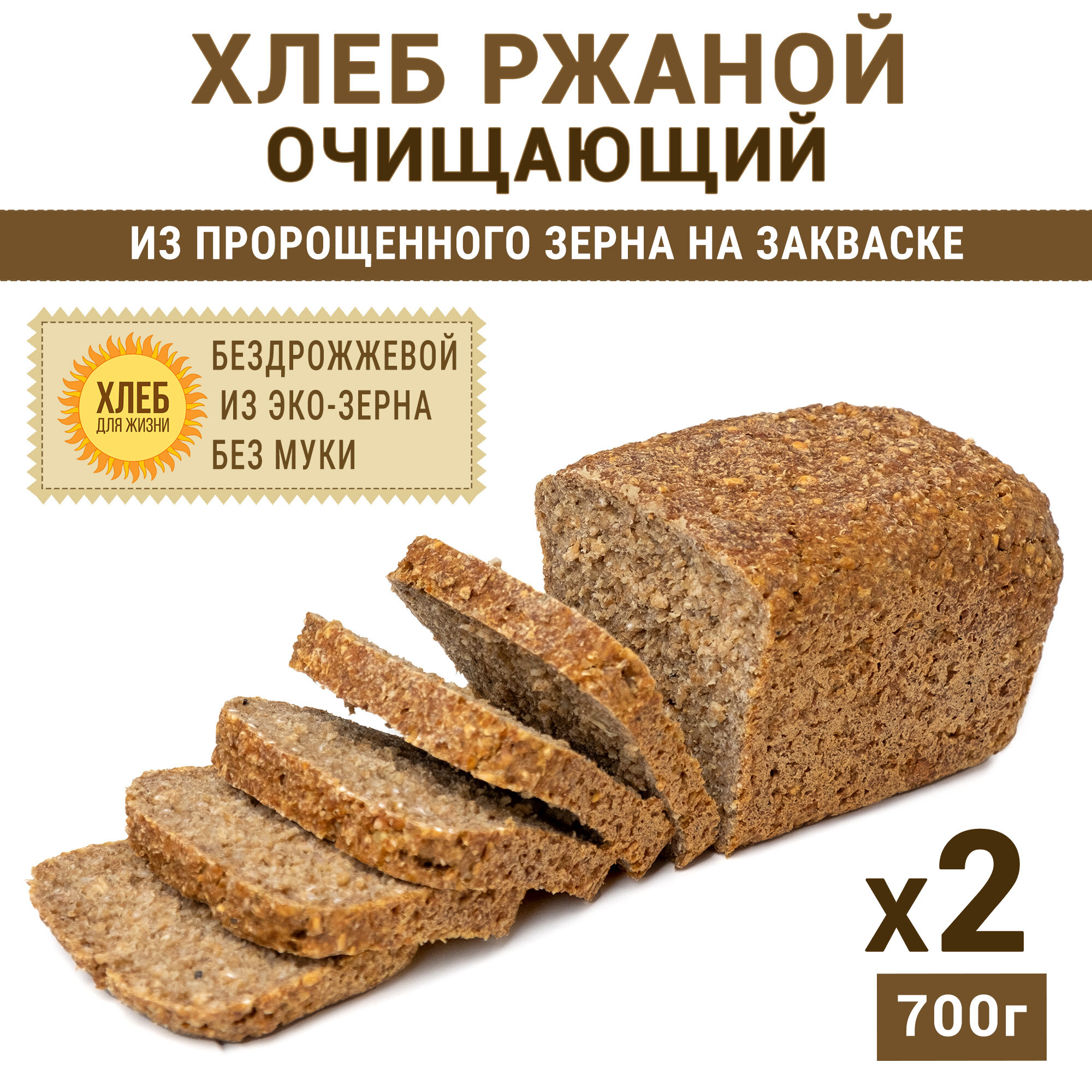 (2х700г) Хлеб Ржаной очищающий, цельнозерновой, бездрожжевой, на ржаной закваске - Хлеб для Жизни интересное: