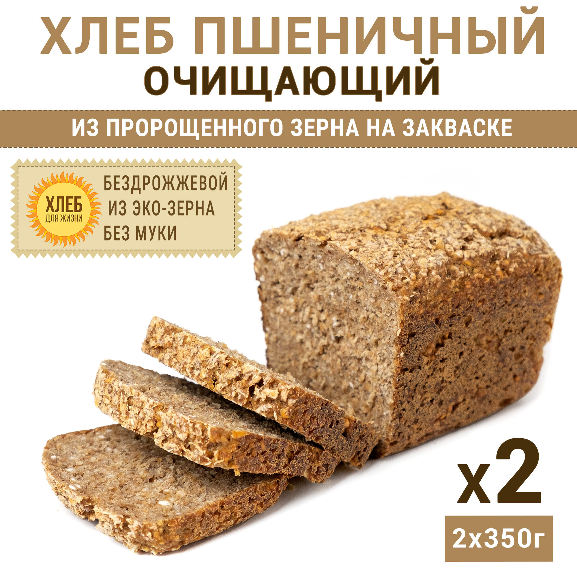 Купить (2х350г) Хлеб Пшеничный очищающий, цельнозерновой, бездрожжевой, на закваске - Хлеб для Жизни