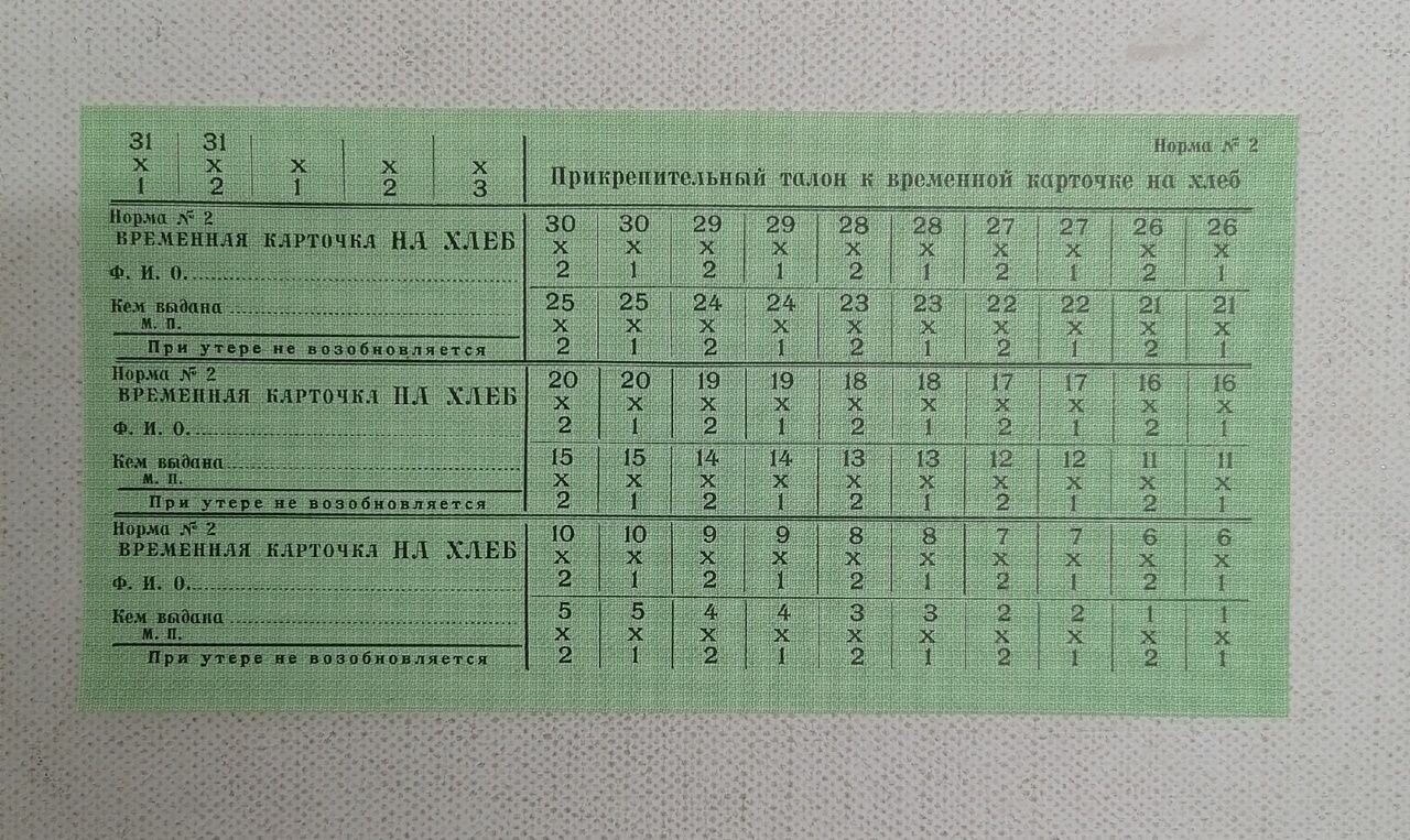 Временная продовольственная карточка на хлеб норма 2 интересное: