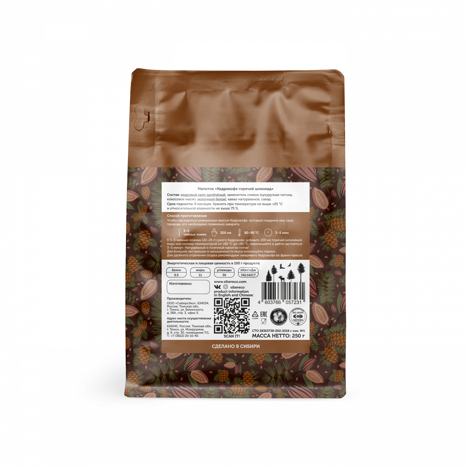 Кедрокофе Горячий шоколад, 250 г Сибереко г Томск -2 уп интересное: