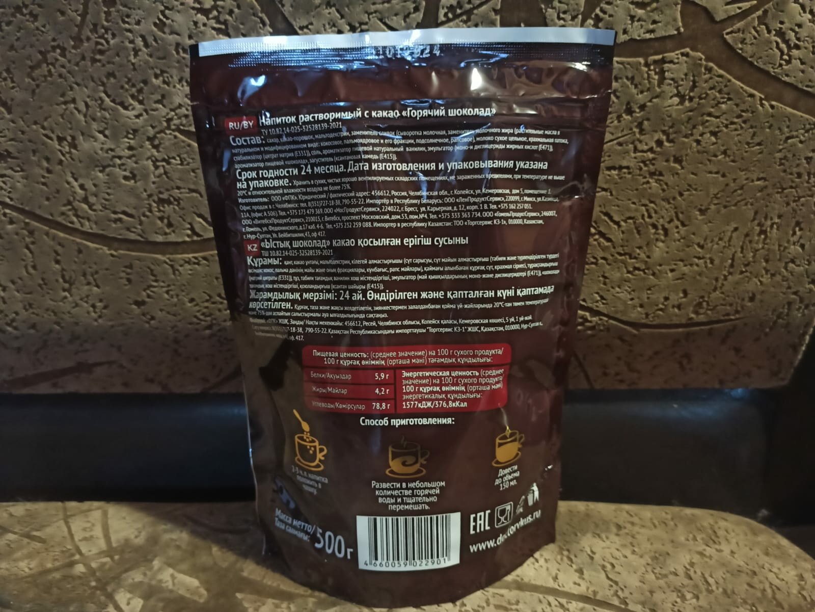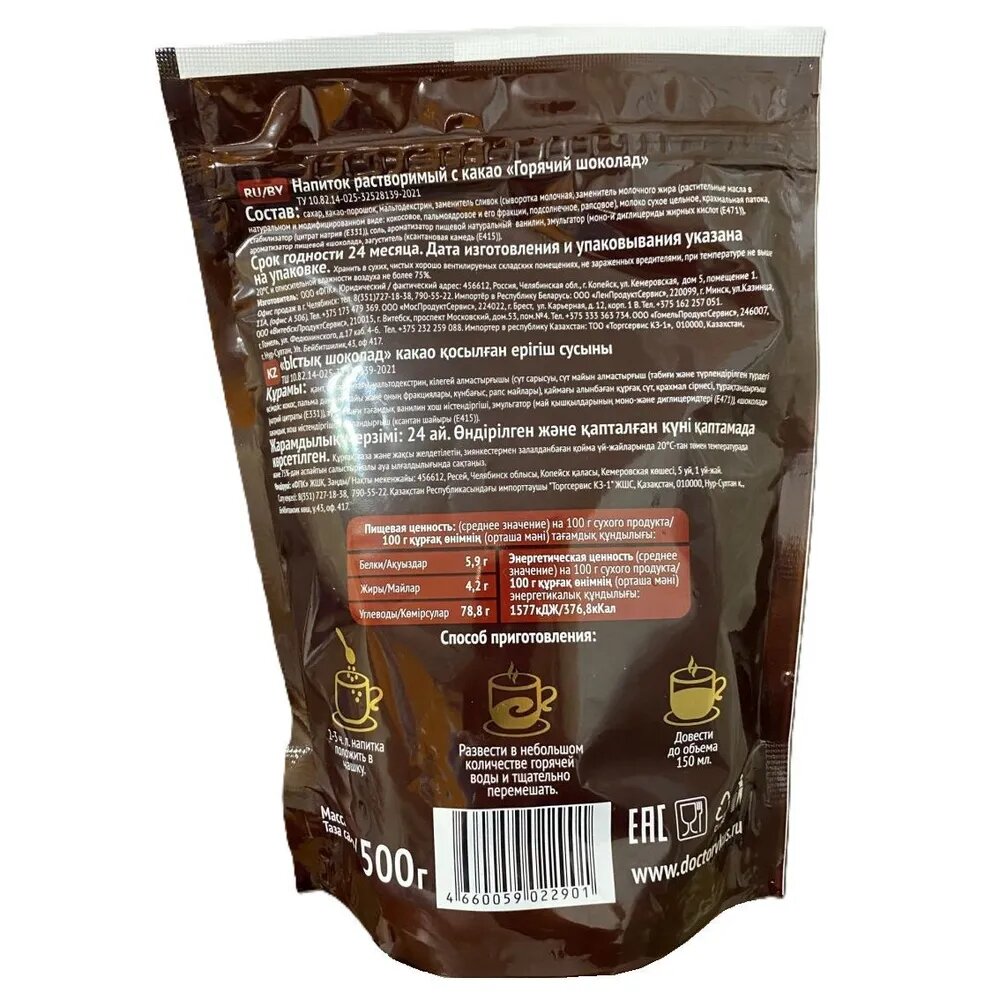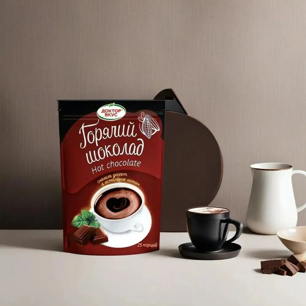 Горячий шоколад "Доктор Вкуса", 270г, тёмный, растворимый, экономичная упаковка интересное: