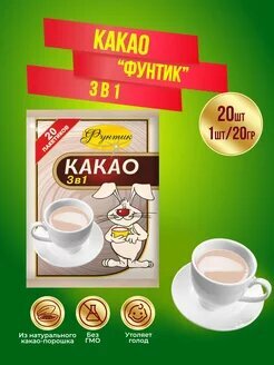 Какао 3 в 1 "ФУНТИК", быстрорастворимое, 20 г, 20 штук в пачке интересное: