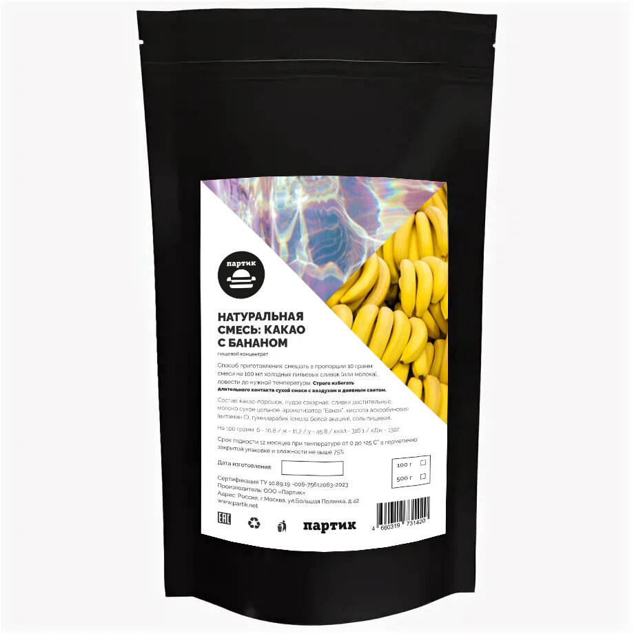Натуральная смесь: какао с бананом 100 грамм интересное: