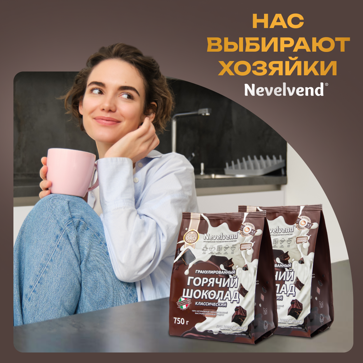 Какао-напиток Nevelvend, горячий шоколад натуральный, гранулированый, 750 гр. интересное: