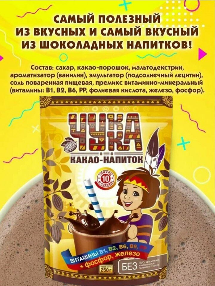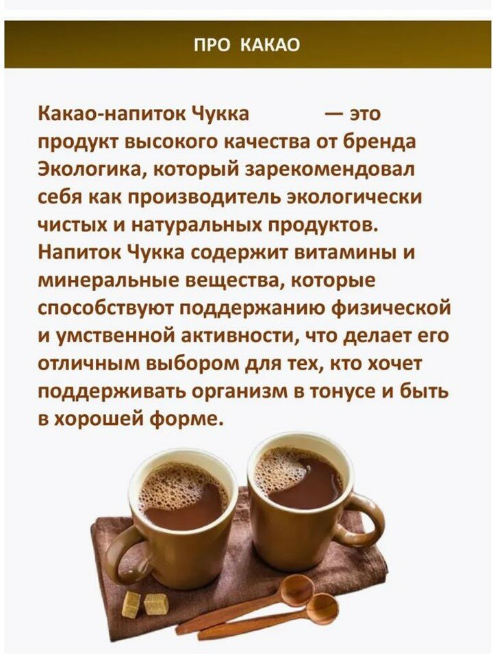 Какао-напиток 2шт*250г Чукка, растворимый, гранулированный, Московская кофейня на паяхъ, Россия интересное: