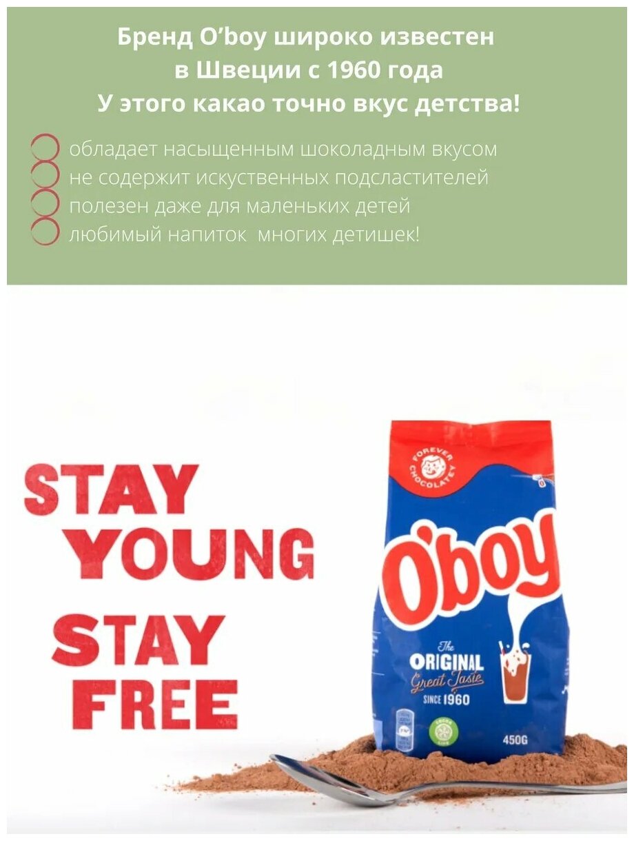 Какао-порошок O`boy Original, натуральный, растворимый, без глютена, 1кг интересное: