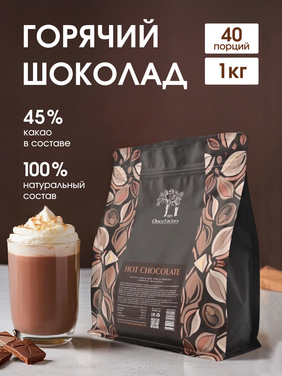 Купить Горячий шоколад Chocofactory 45% какао, c низким содержанием сахара, натуральный состав, экономичная упаковка 1 кг