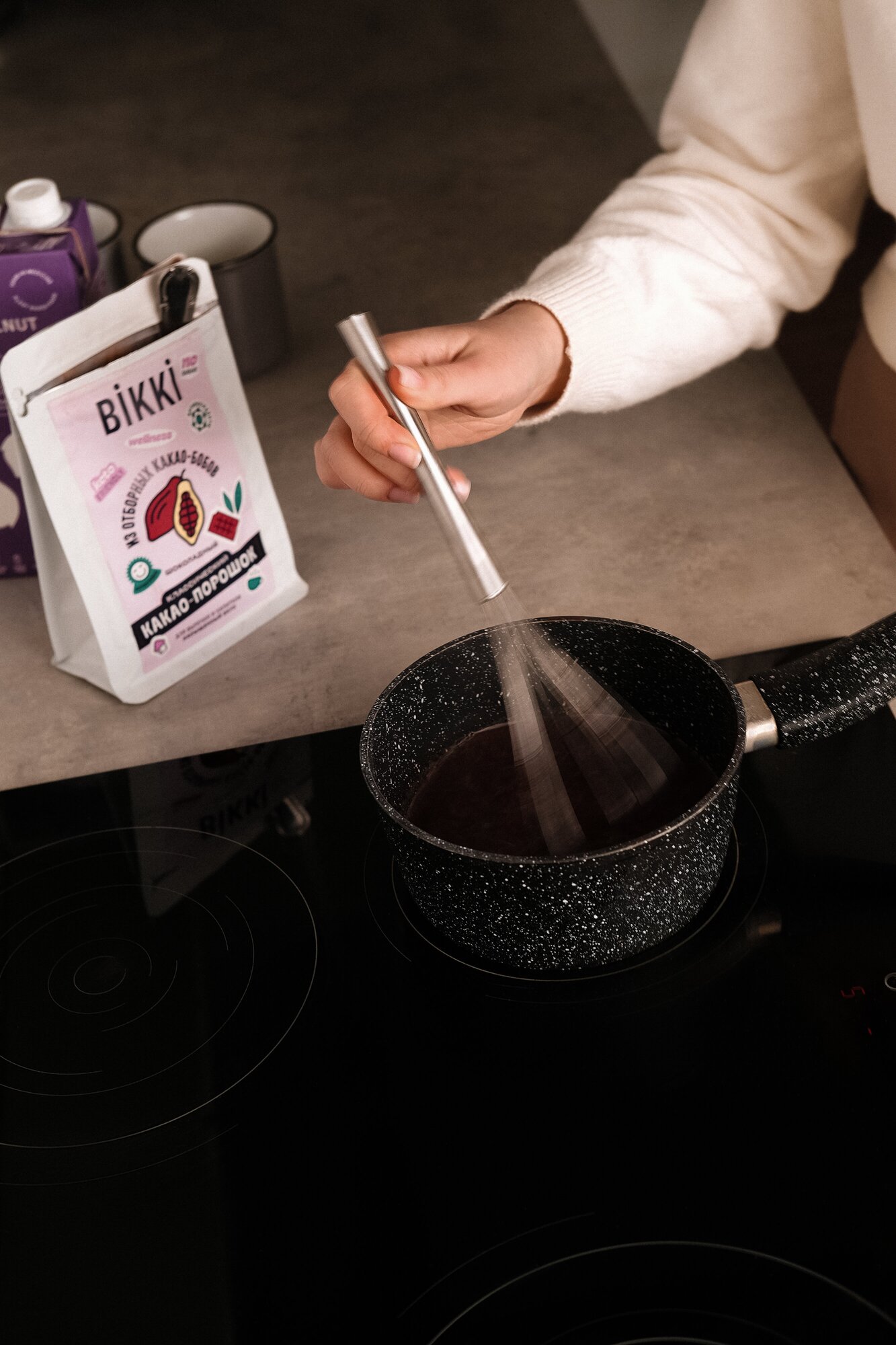 Какао порошок алкализованный с бананом без сахара BIKKI 180гр, горячий шоколад с суперфудами интересное: