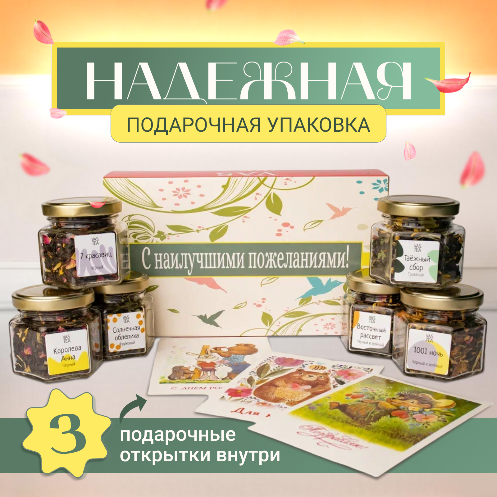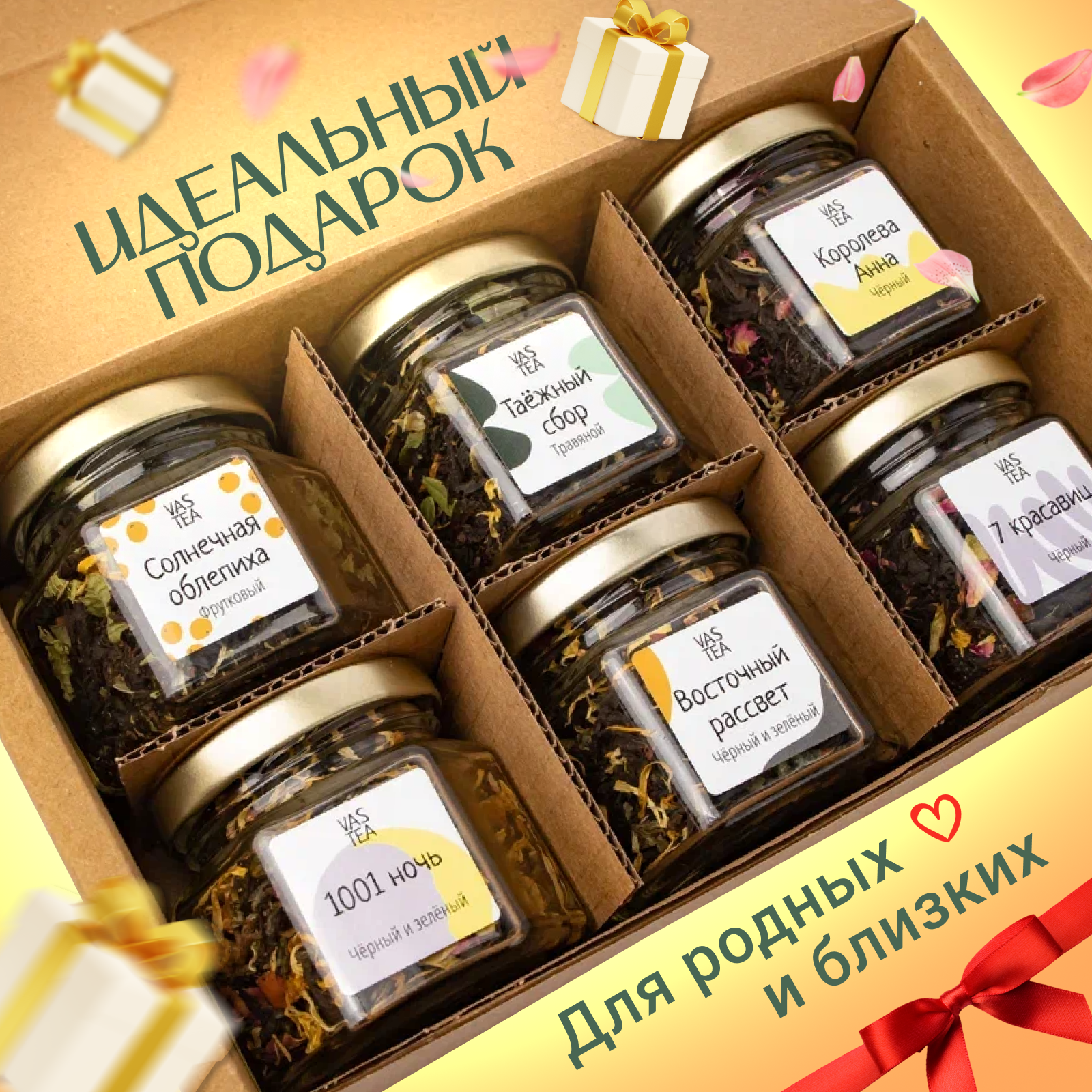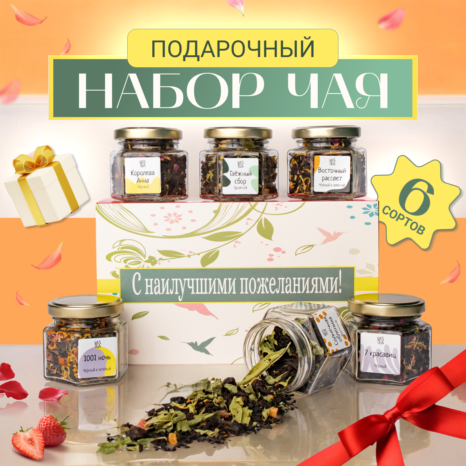 Чайный набор Любимый чай, ассорти, листовой весовой чай, 6 вкусов по 100 мл интересное: