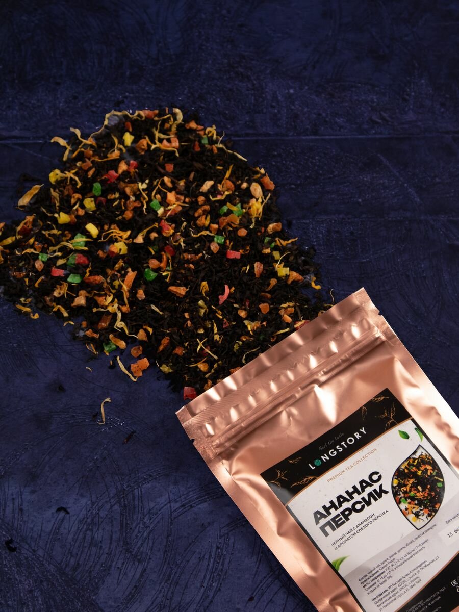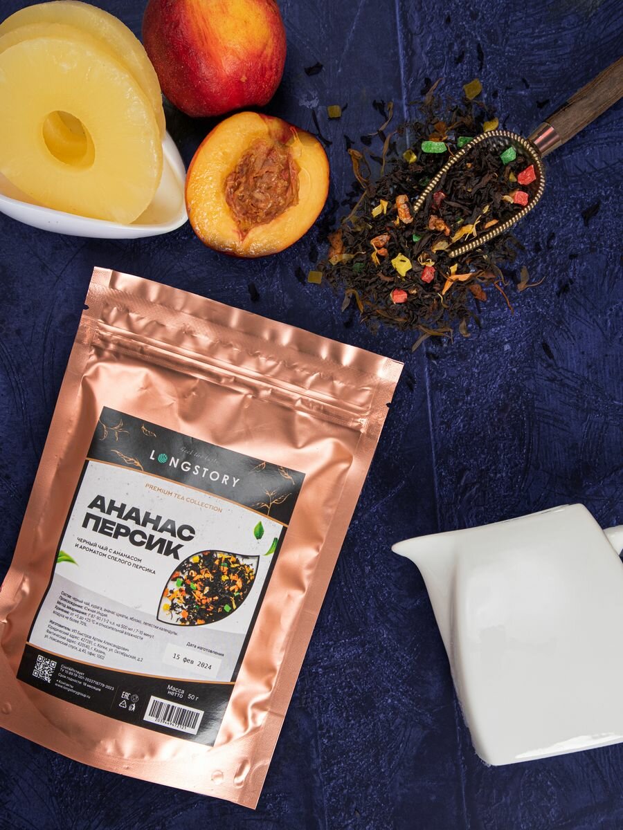 Черный чай крупнолистовой с ананасом и ароматом спелого персика интересное: