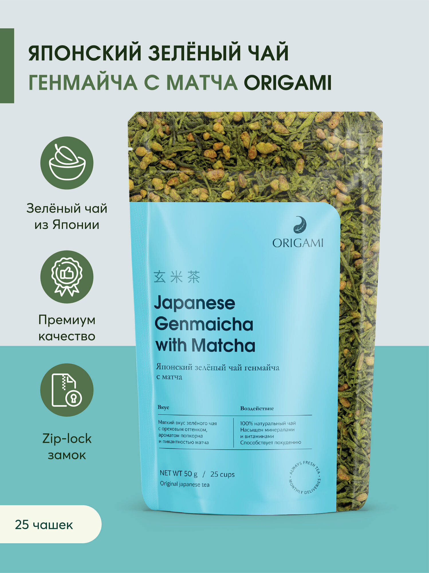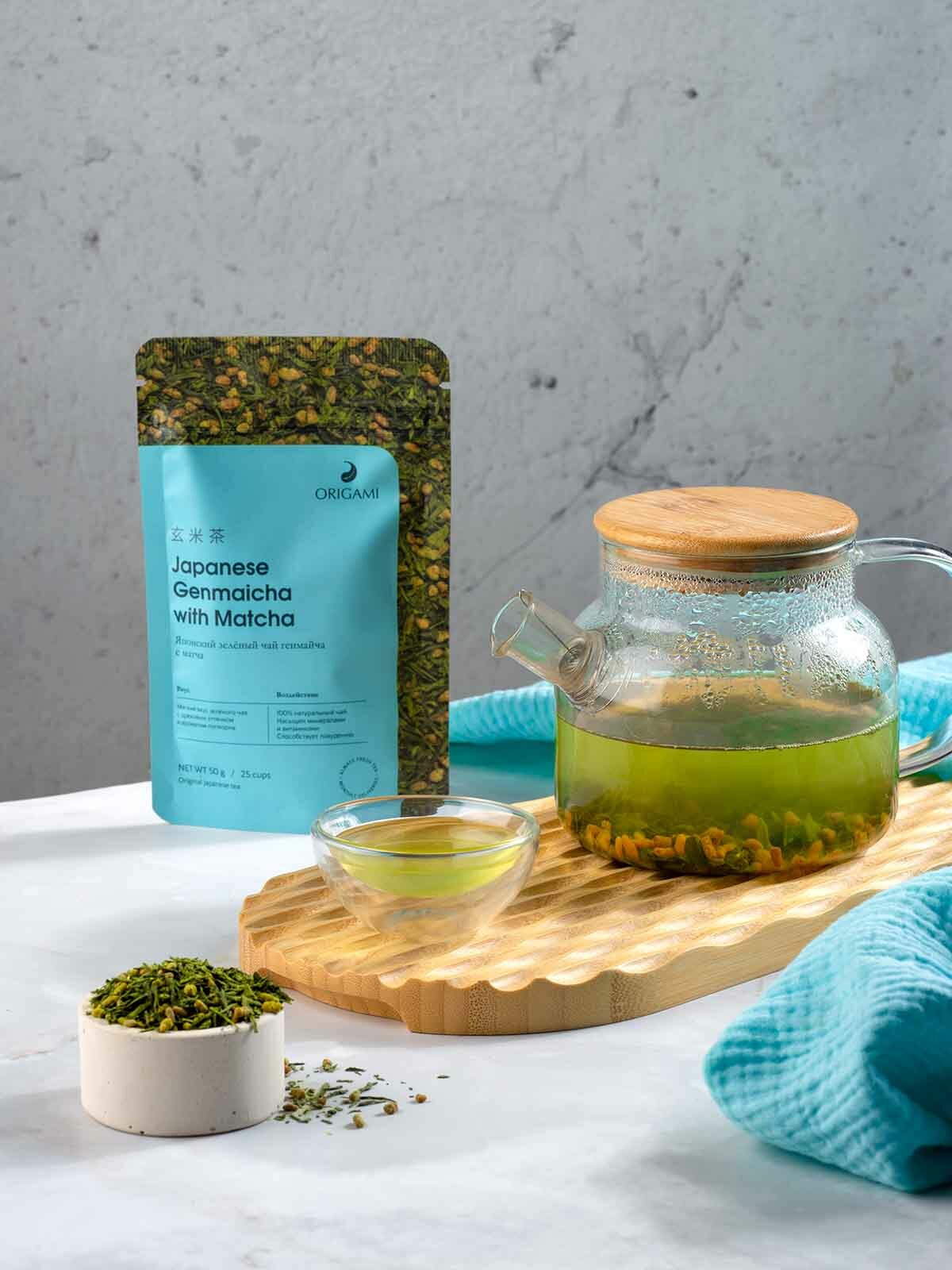 Японский зелёный чай генмайча, ORIGAMI TEA, 50 г зеленый чай сенча с добавлением матча, чай зеленый рассыпной, листовой интересное: