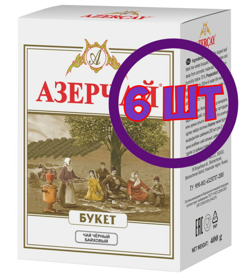 Купить Чай черный Азерчай Букет, листовой, картон, 400 гр (комплект 6 шт.) 6821048