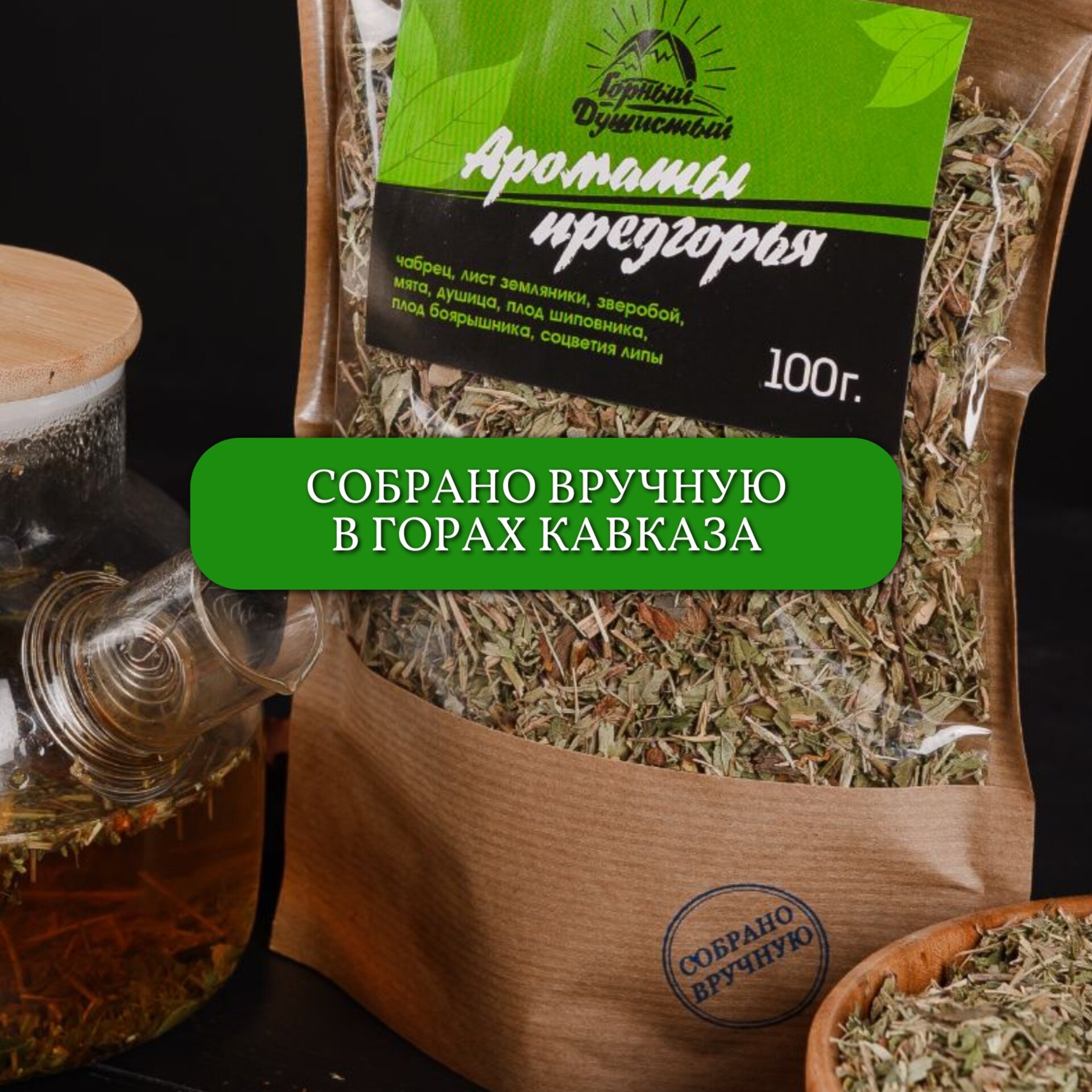 Купить Чай Ароматы предгорья с чабрецом сушеной мятой успокаивающий листовой от кашля от стресса для бани в подарок 100 гр