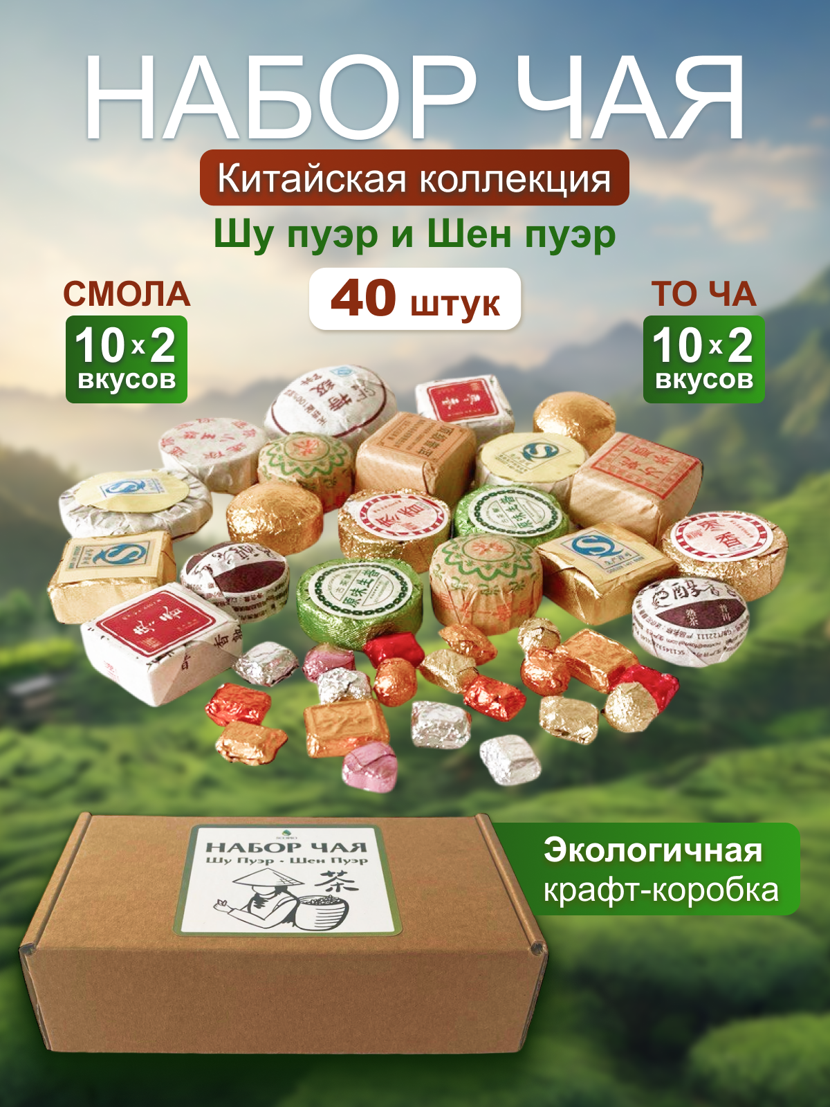 Набор прессованного китайского чая мини то ча шу и шен пуэр 20 шт SCOPIO