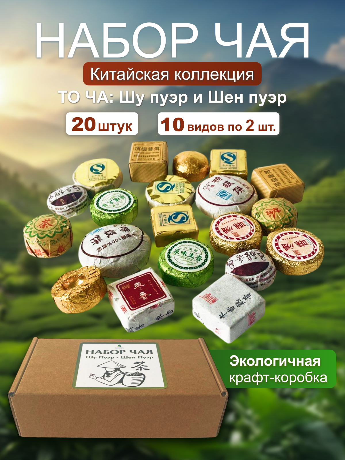 Купить Набор прессованного китайского чая мини то ча шу и шен пуэр 20 шт SCOPIO