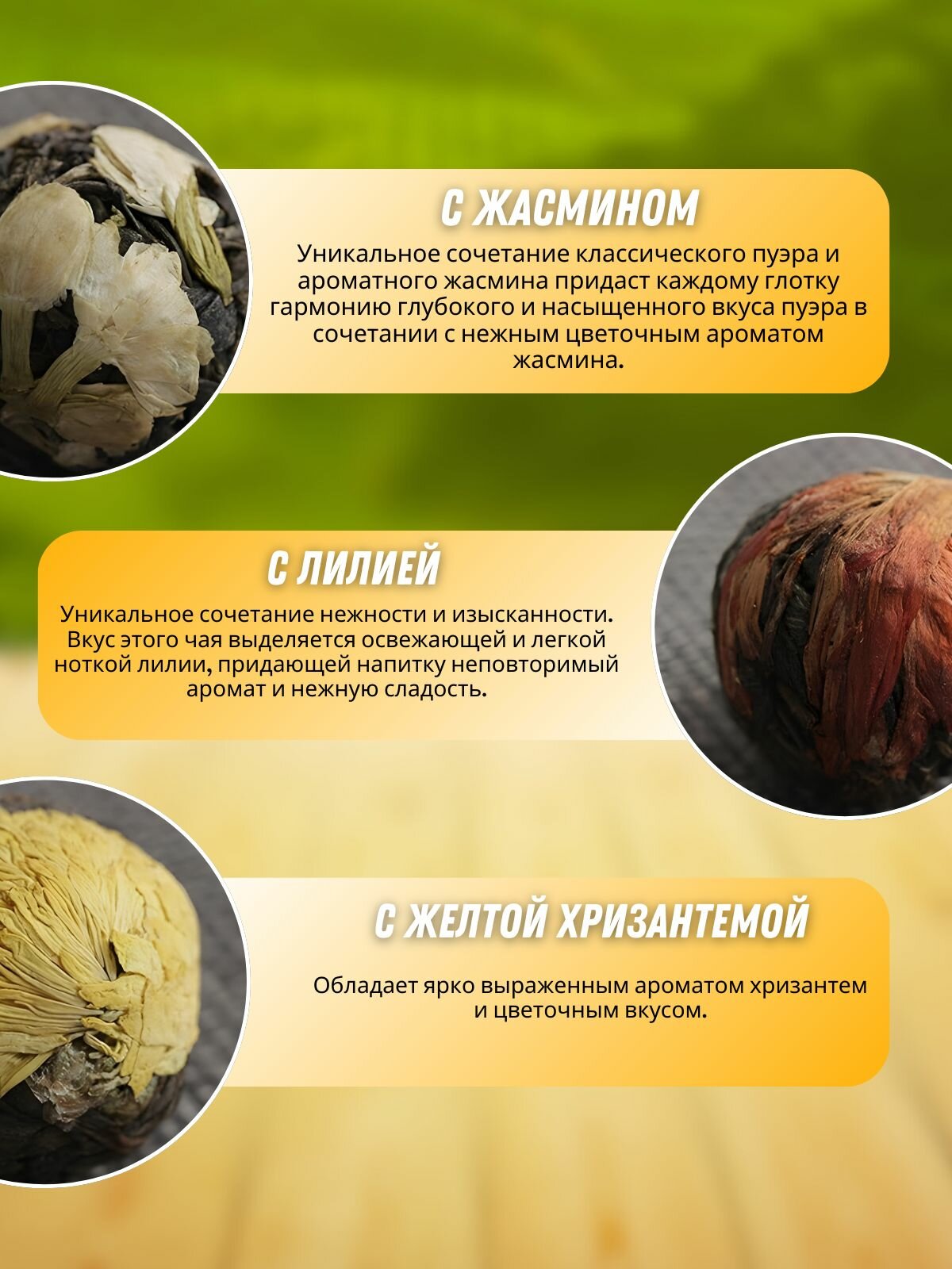 Подарочный чайный набор "Шэн Пуэр", с цветами, зеленый, крупнолистовой, 150 гр интересное:
