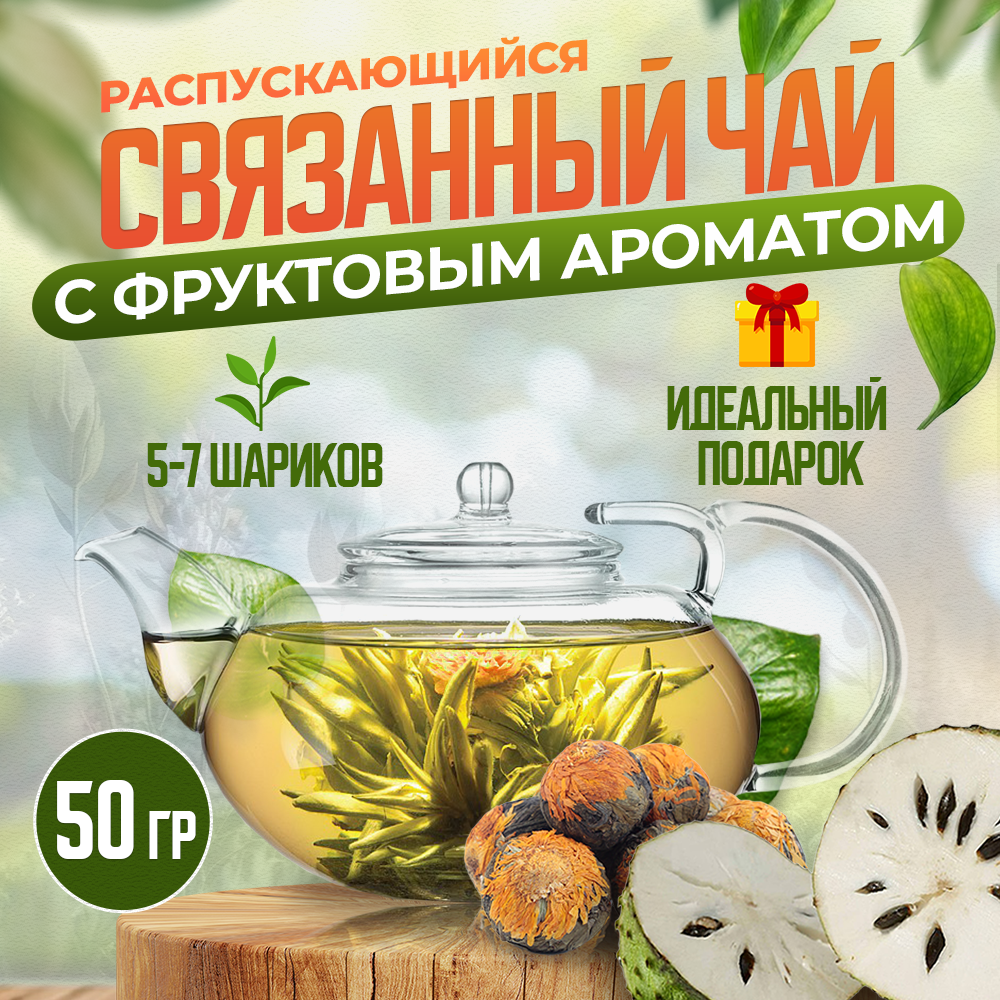 Связанный зеленый чай, распускающийся цветок, фруктовый, подарочный, 50 г интересное: