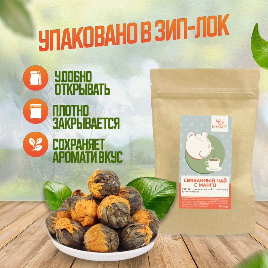Связанный зеленый чай, распускающийся цветок, с манго, подарочный, 50 г интересное:
