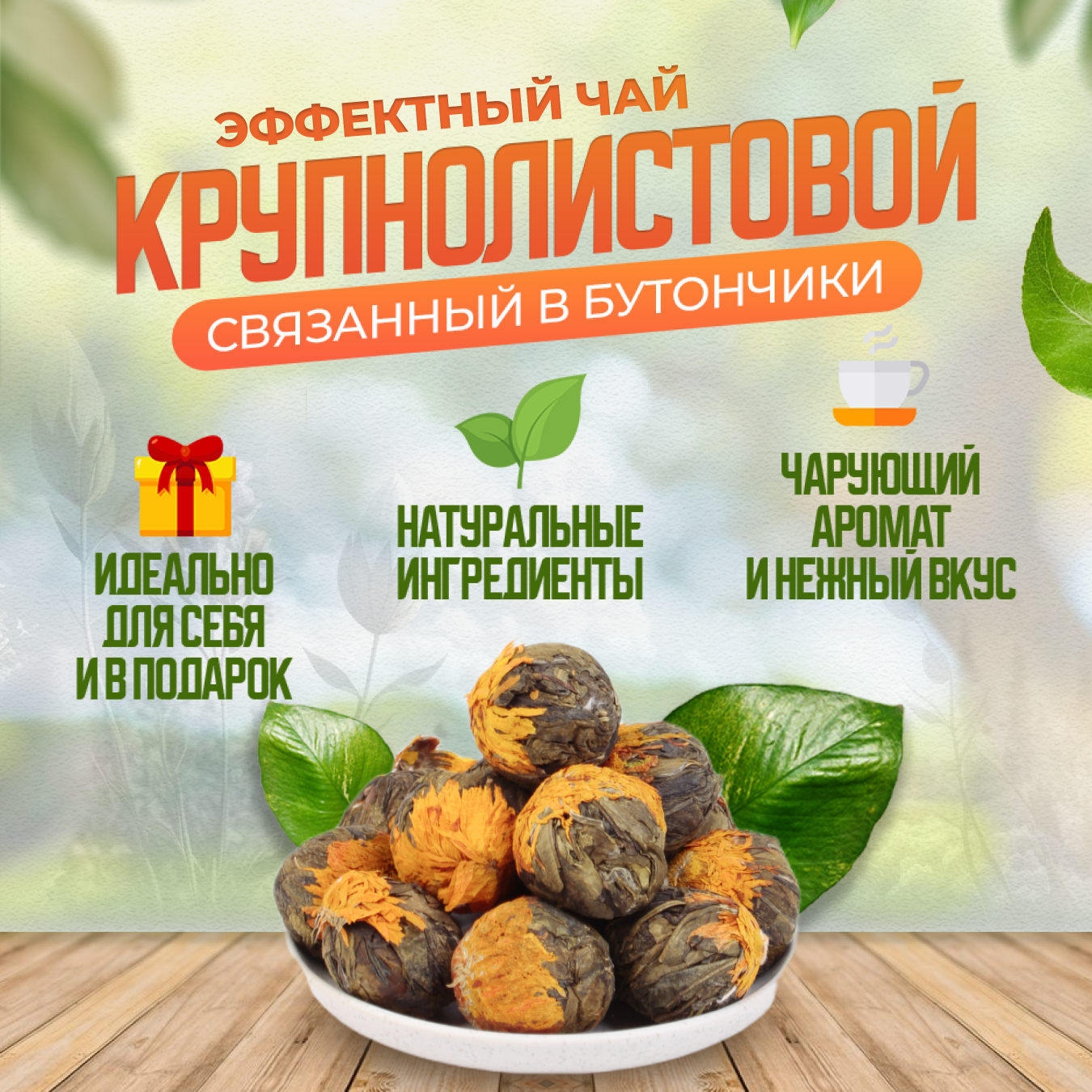 Связанный зеленый чай, распускающийся цветок, фруктовый, подарочный, 50 г