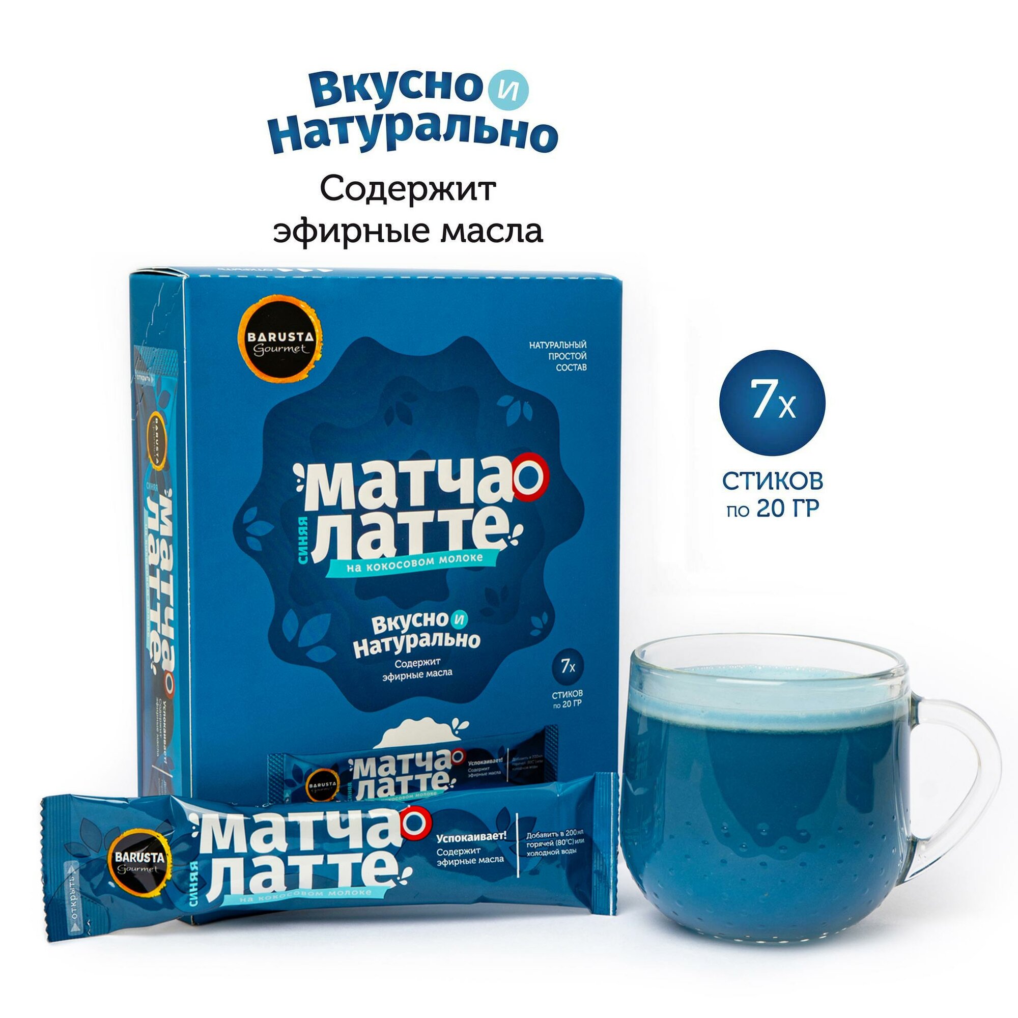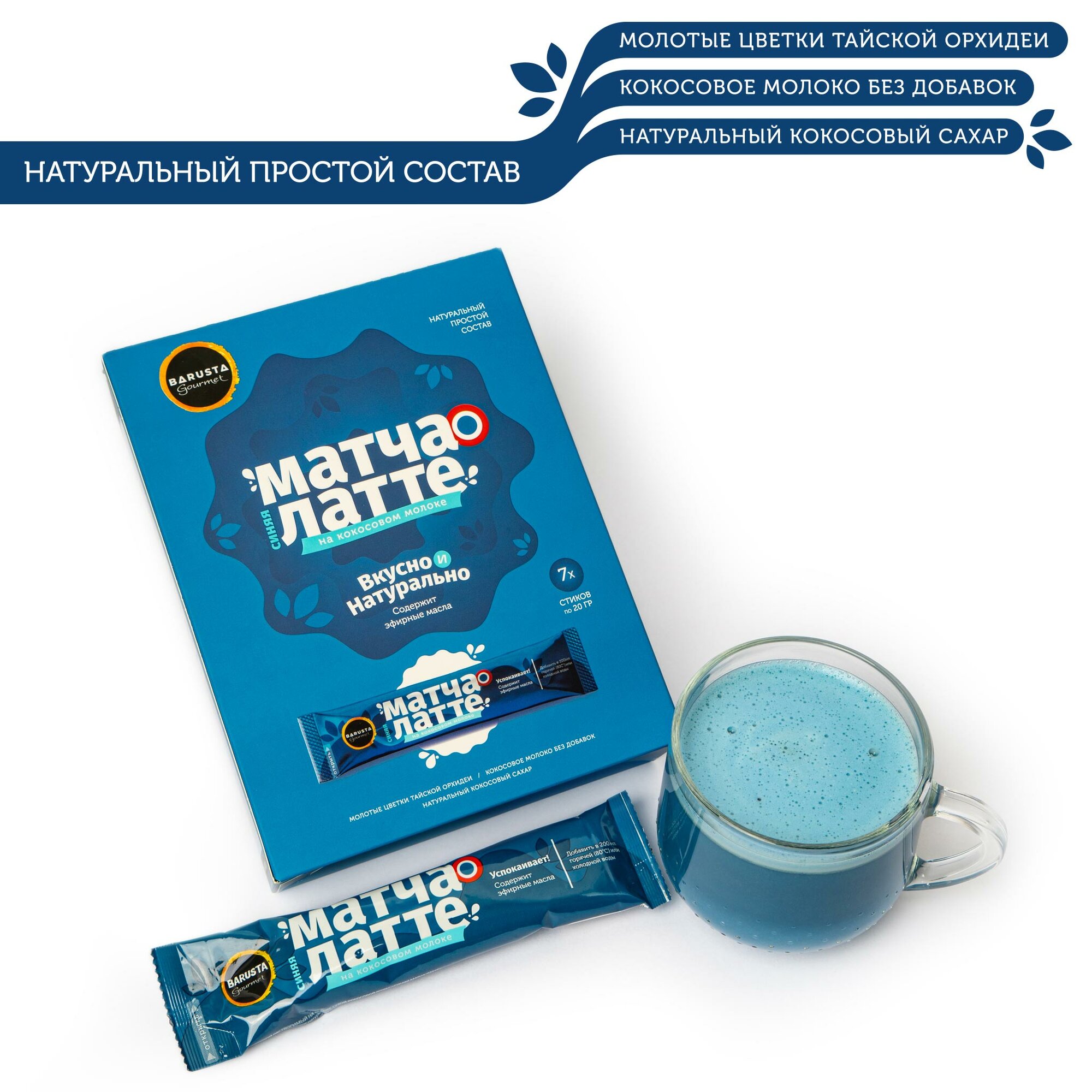Синяя матча латте BARUSTA! на кокосовом молоке, чай анчан растворимый, натуральный состав, 140г (20г х 7 стиков) интересное:
