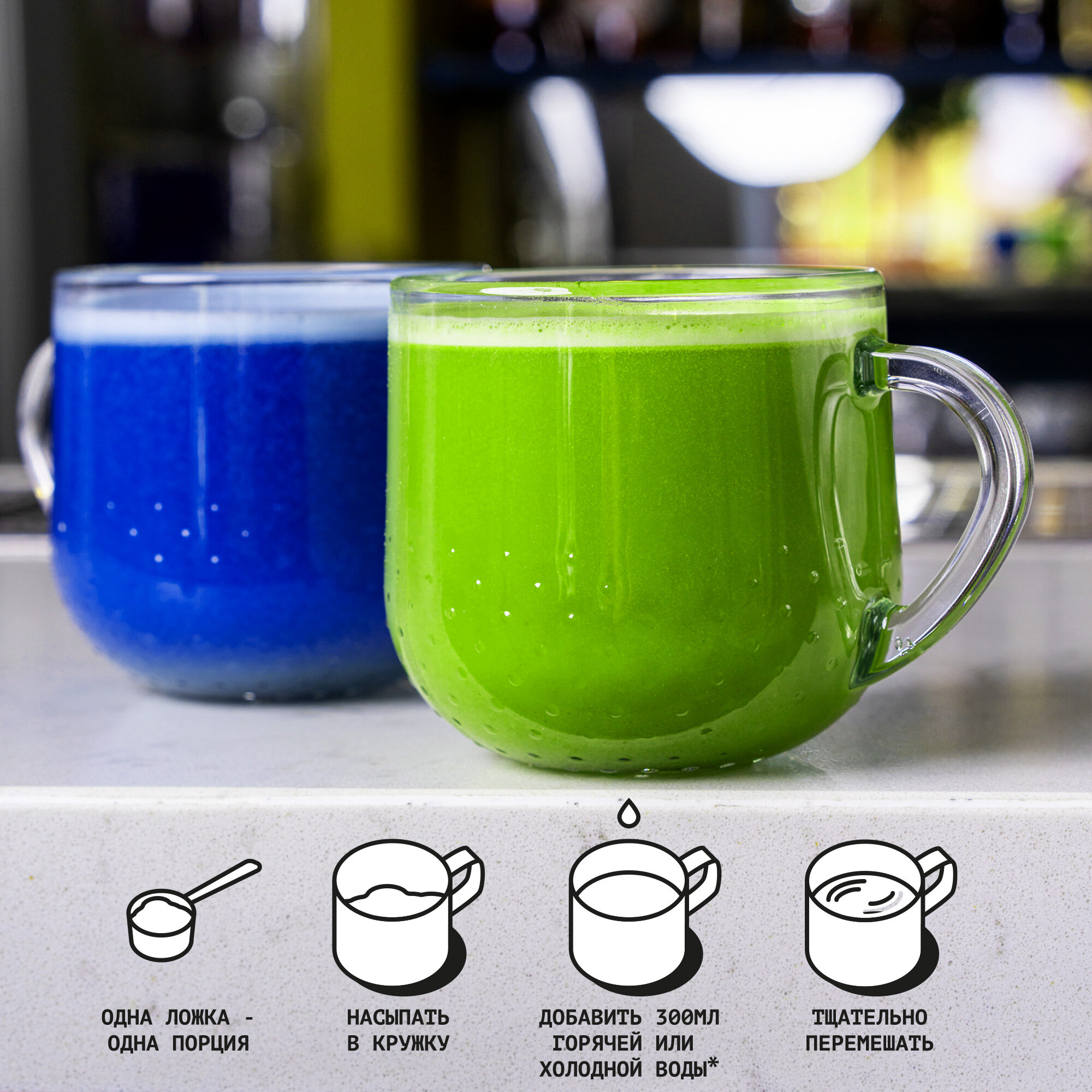 Синяя матча латте BARUSTA! на кокосовом молоке, чай анчан растворимый, натуральный состав, 140г (20г х 7 стиков)