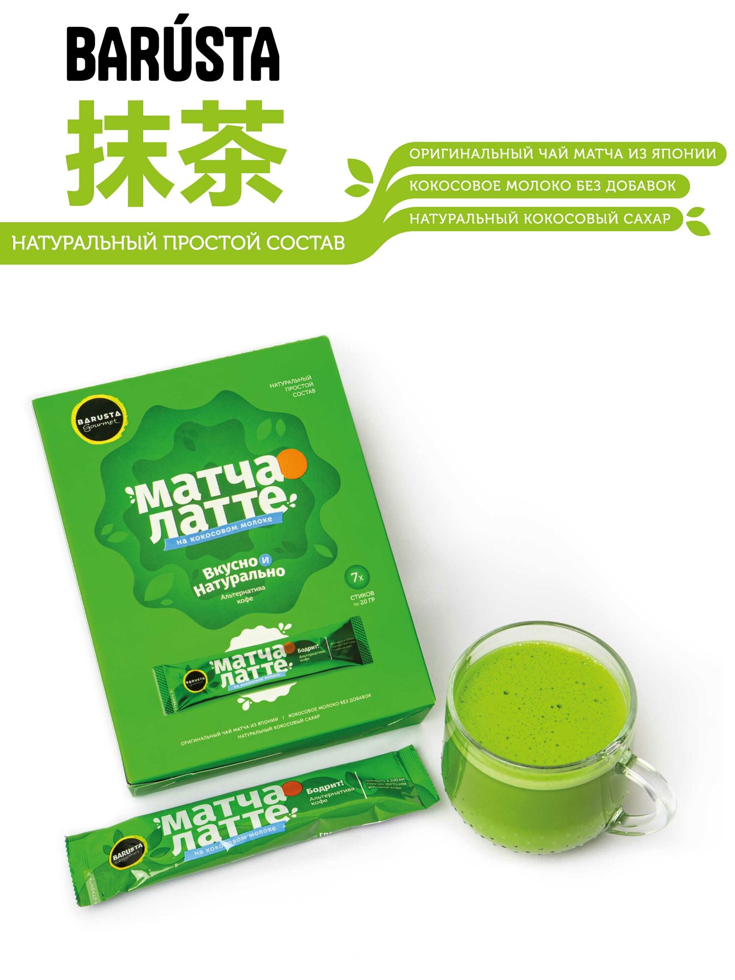 Матча латте BARUSTA! на кокосовом молоке, растворимый напиток, натуральный состав, 700г (35 стиков по 20г) интересное: