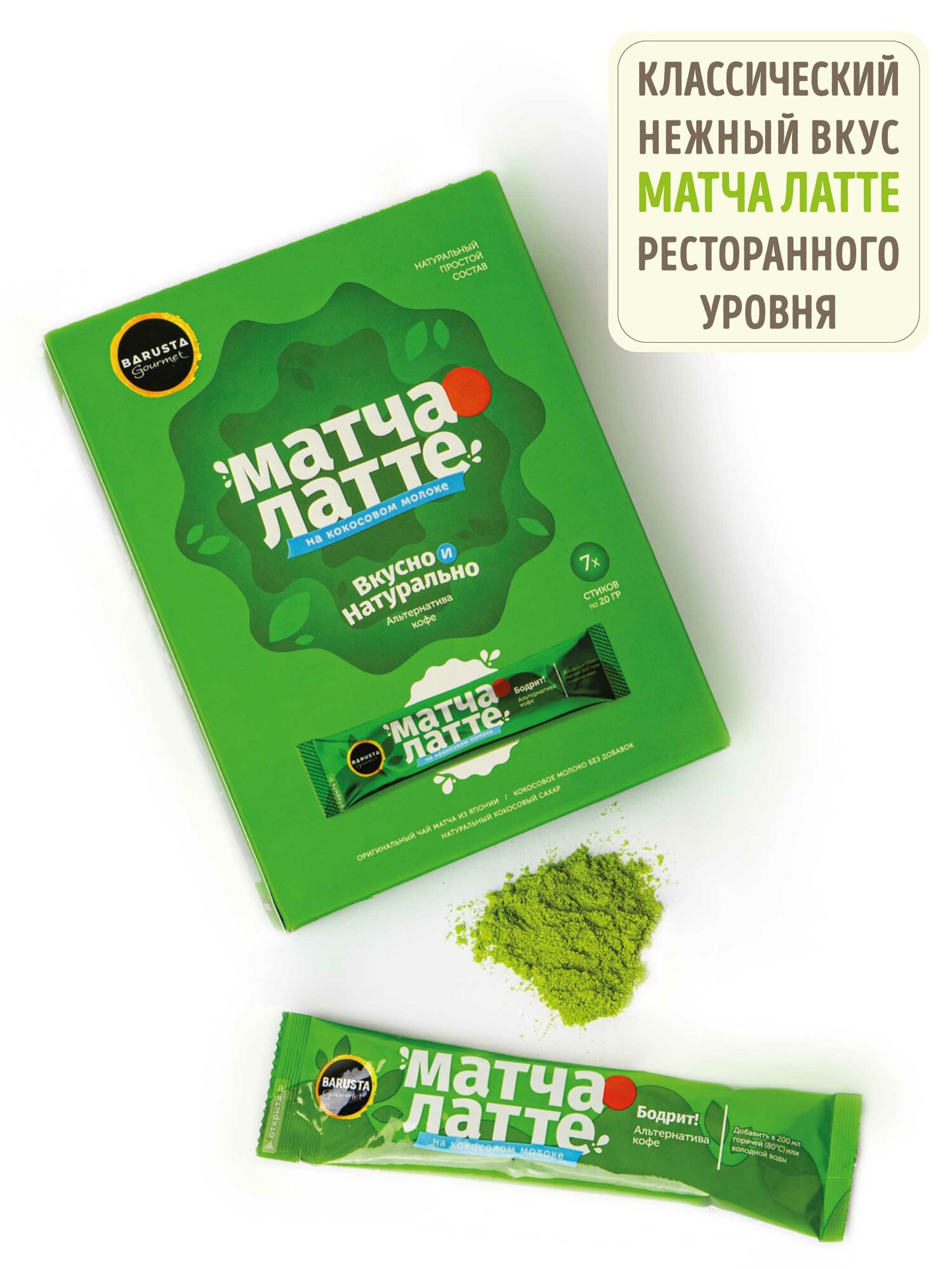 Матча латте BARUSTA! на кокосовом молоке, растворимый напиток, натуральный состав, 140г (20г х 7 стиков)