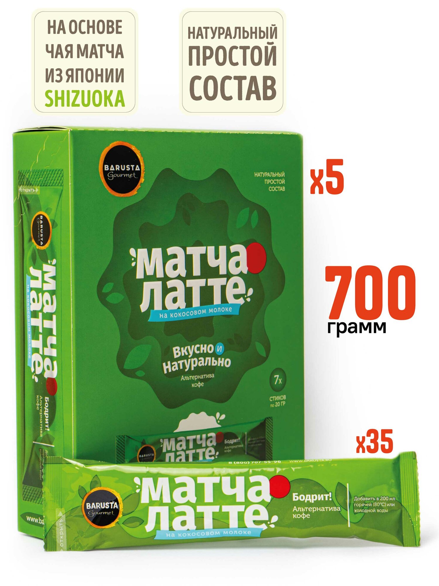 Купить Матча латте BARUSTA! на кокосовом молоке, растворимый напиток, натуральный состав, 700г (35 стиков по 20г)