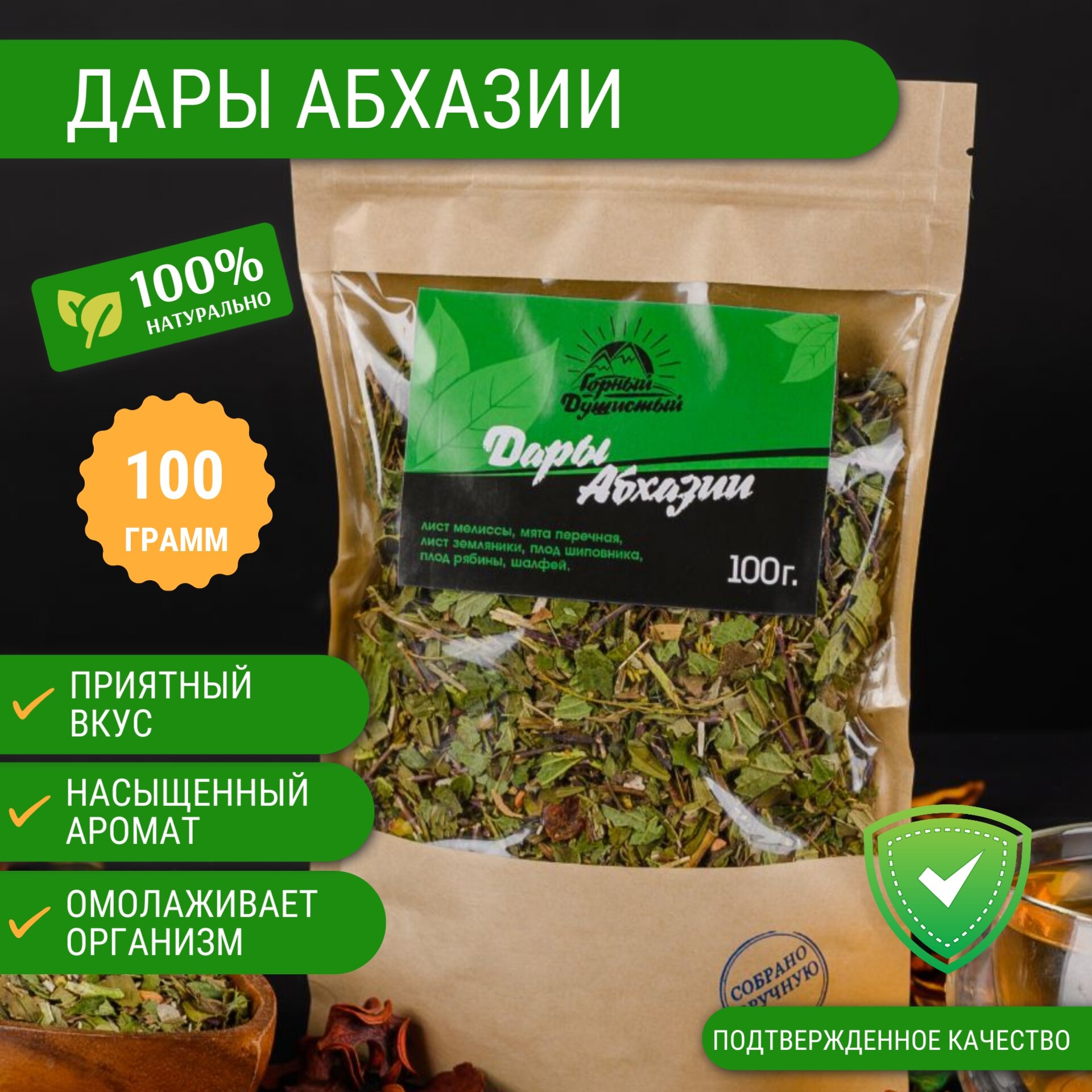 Чай Дары Абхазии травяной сбор рассыпной листовой ароматный насыщенный для иммунитета от стресса подарочный в баню 100 г интересное: