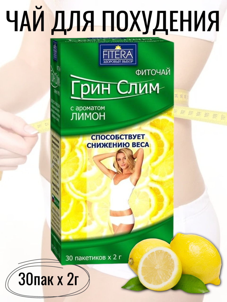 Чай Грин Слим Ти с ароматом лимона 30 фильтр-пакетов, чай для похудения, фиточай, Фитэра интересное: