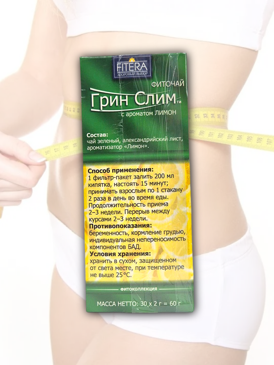 Купить Чай Грин Слим Ти с ароматом лимона 30 фильтр-пакетов, чай для похудения, фиточай, Фитэра